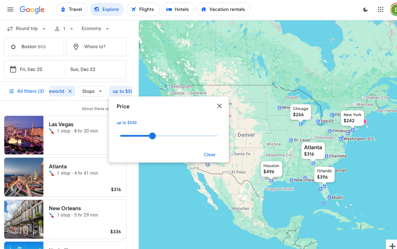 Using Google Flights to find your own flights