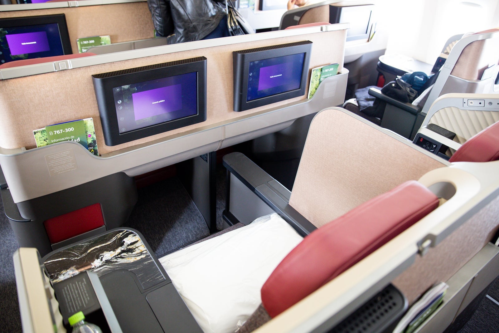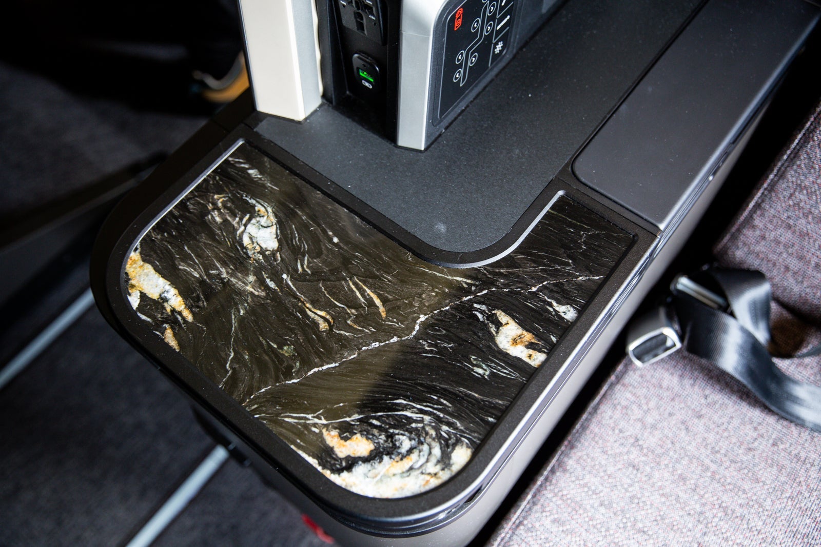 From granite touches to adjustable lighting, the new seat felt, during a brief test in Lima, like it belonged among the better biz-class seats out there.