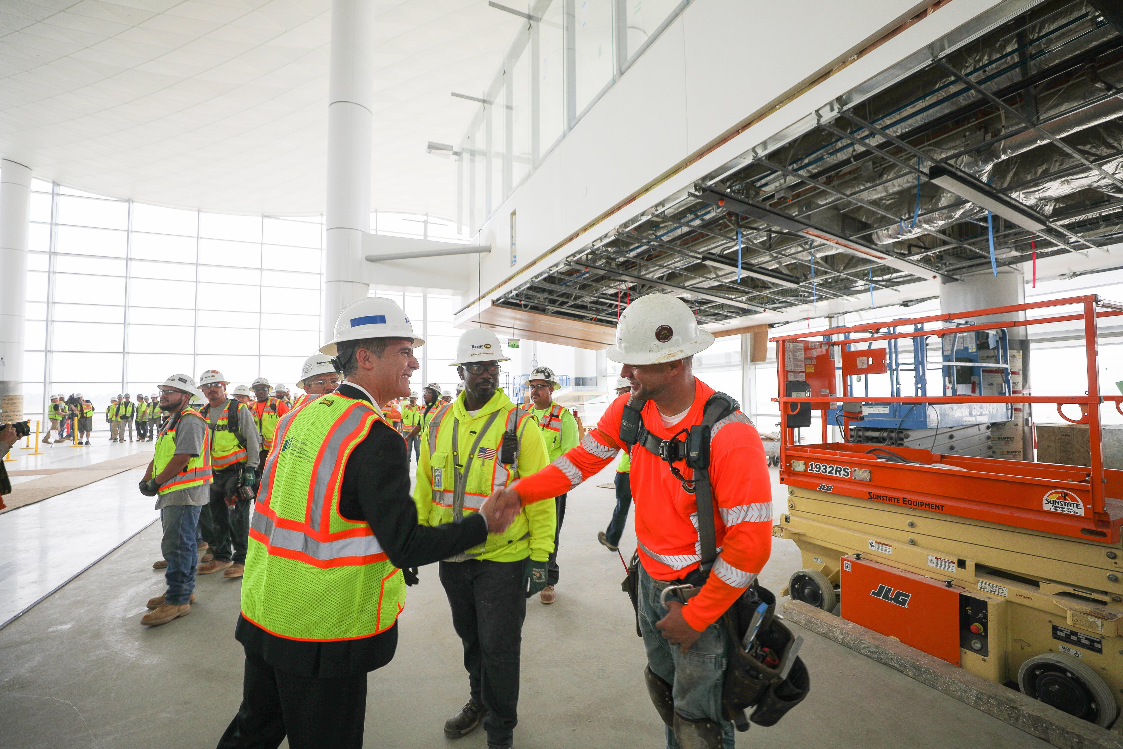 The $14 billion in projects at LAX are part of what Los Angeles Mayor Eric Garcetti says is a program to "make LAX work, work for you, work for our visitors and work for everybody," during a tour of the midfield concourse construction today.