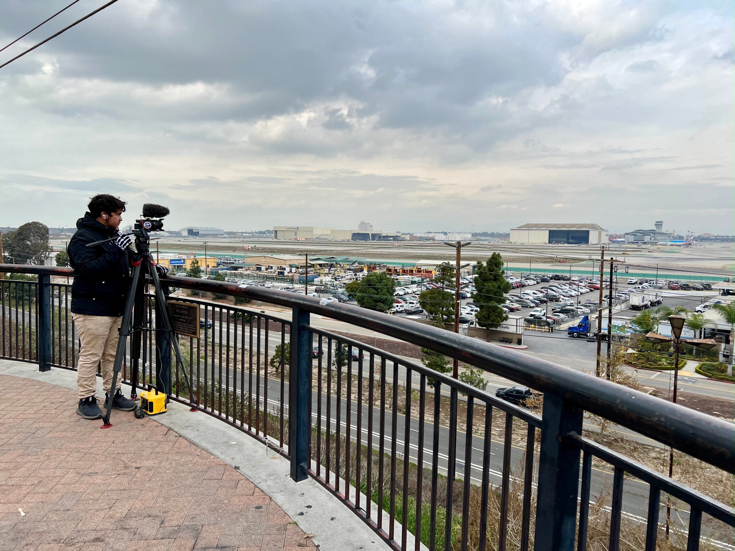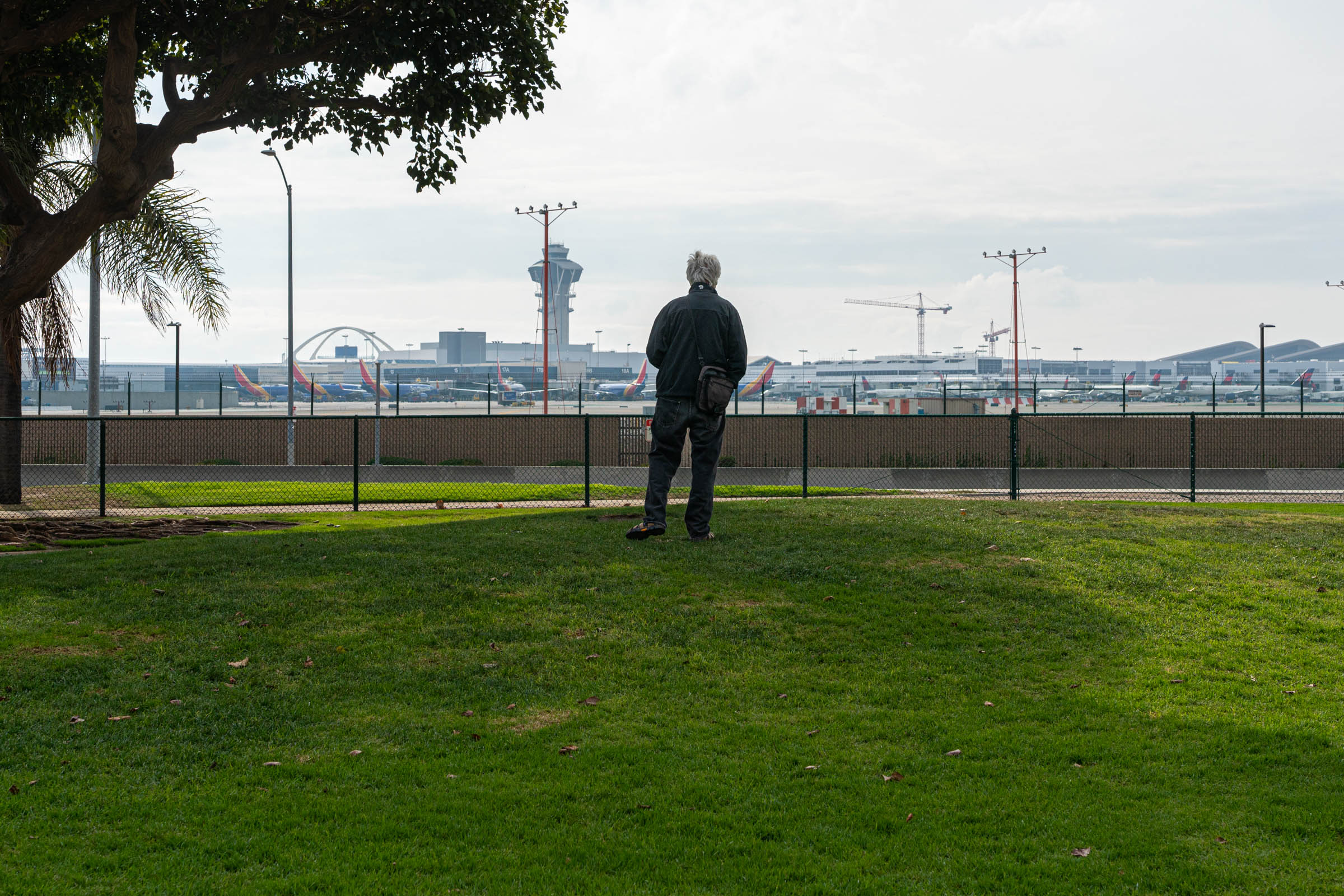 The In-N-Out and park sit at the northeast corner of LAX, just off of airport property, and adjacent to the arrivals path for runway 24R, one of the four runways at the airport.