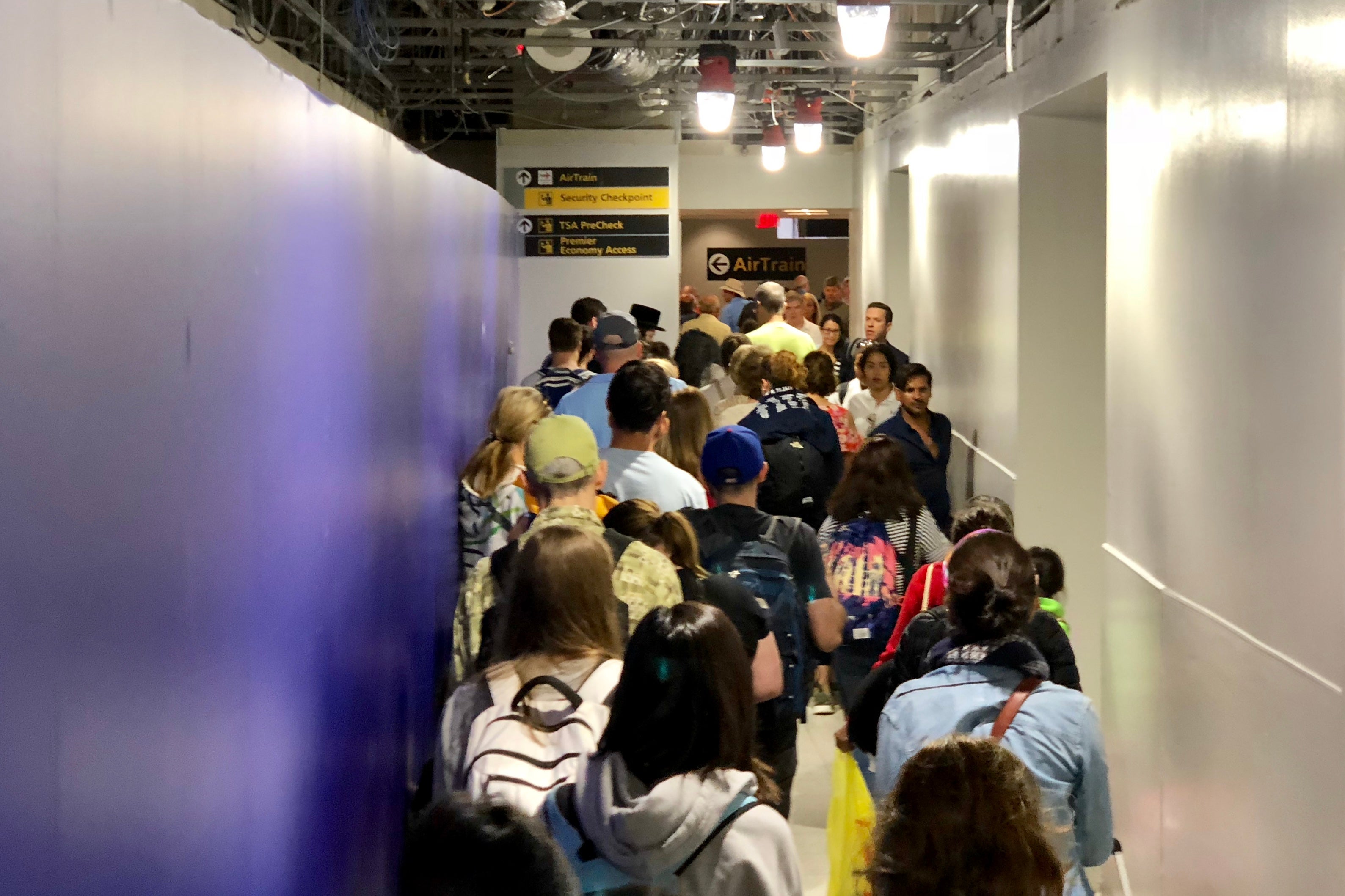 That area was even more of a mess, though. Economy and Premier Access passengers were being grouped together in a line that weaved throughout the checkpoint, down an escalator and then past dozens of check-in kiosks, more than halfway through the rest of Terminal C.