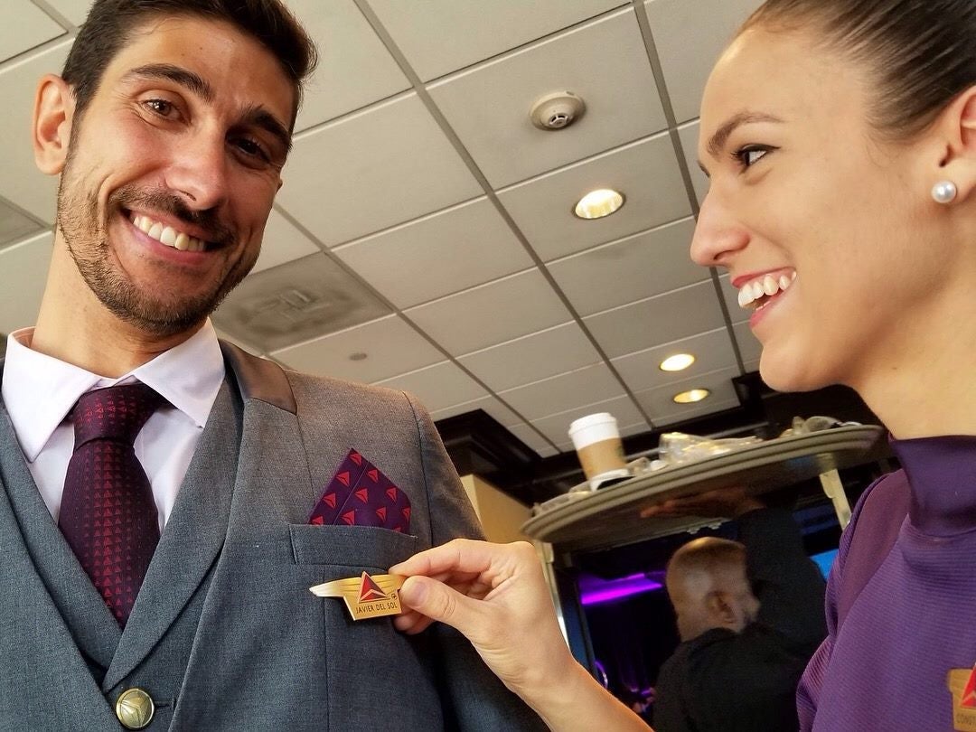 In my free time, I couldn't stop reminiscing about my travels in Europe and began to Google "jobs that allow you to travel", which naturally led me to the flight attendant career. When I shared with Javi what I'd learned about the flexible nature of the job and the opportunities for travel, he also became interested, and we secured interviews just a few days apart. We were both hired by Delta on the same day, and cried and hugged. Delta took a chance on Javi, who was still improving his English. Delta truly gives everyone an equal chance for success and we are so grateful for that; it changed both of our lives!