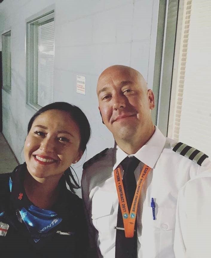 Leila joined Frontier as a flight attendant in October 2017 after leaving a similar position in Doha, Qatar, while Kyle began his first officer training in December 2016, 12 years after he first entered the airline industry.