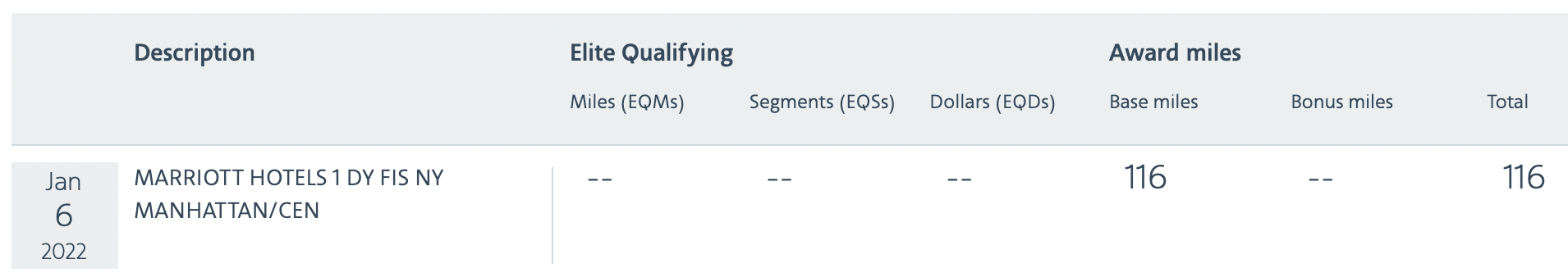 TPG's Scott Mayerowitz stayed at the Fairfield Inn & Suites New York Manhattan/Central Park and earned 116 redeemable AAdvantage miles, along with a Marriott elite night and 500 Marriott Bonvoy points. He is also expected to earn 116 Loyalty Points come March 1.