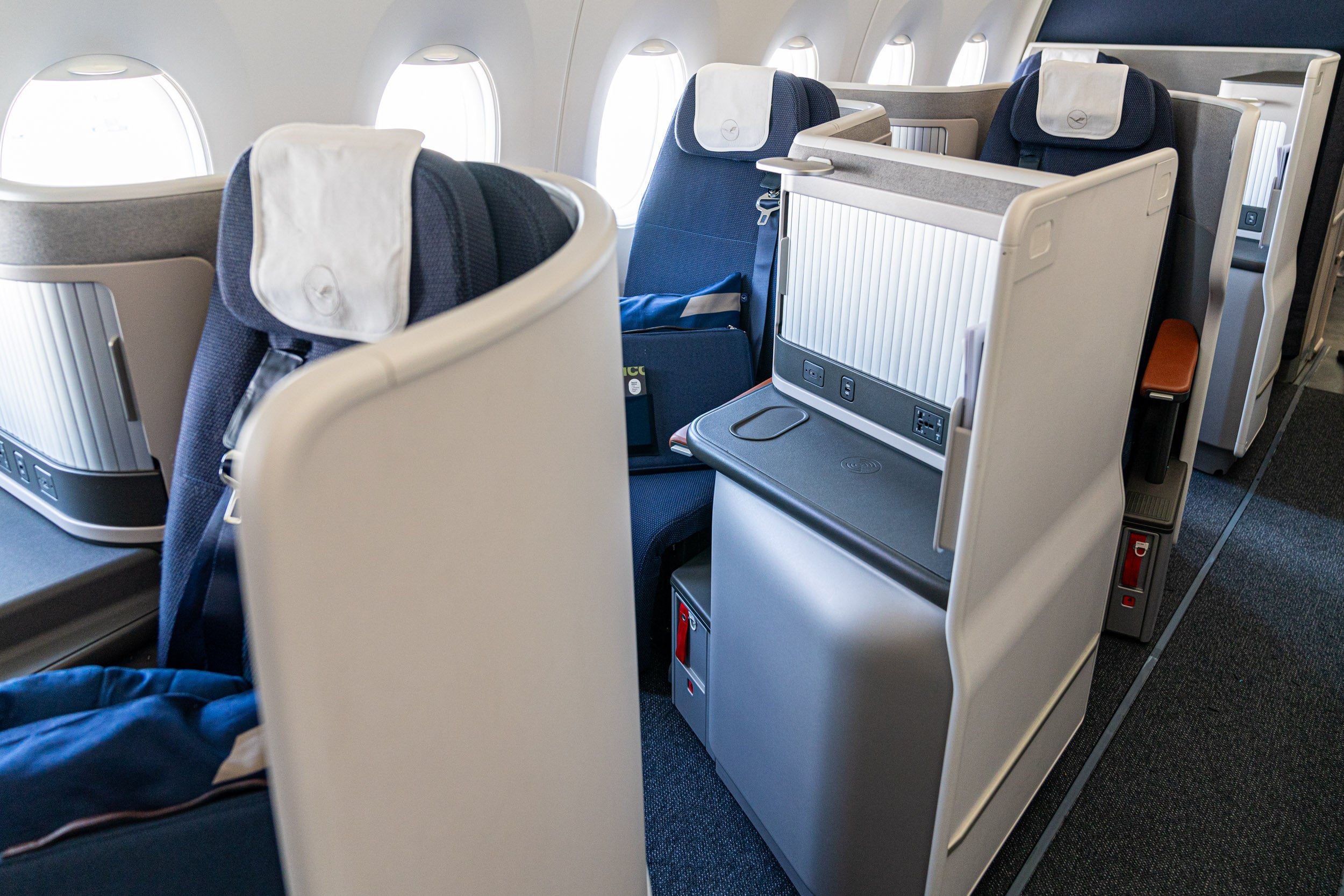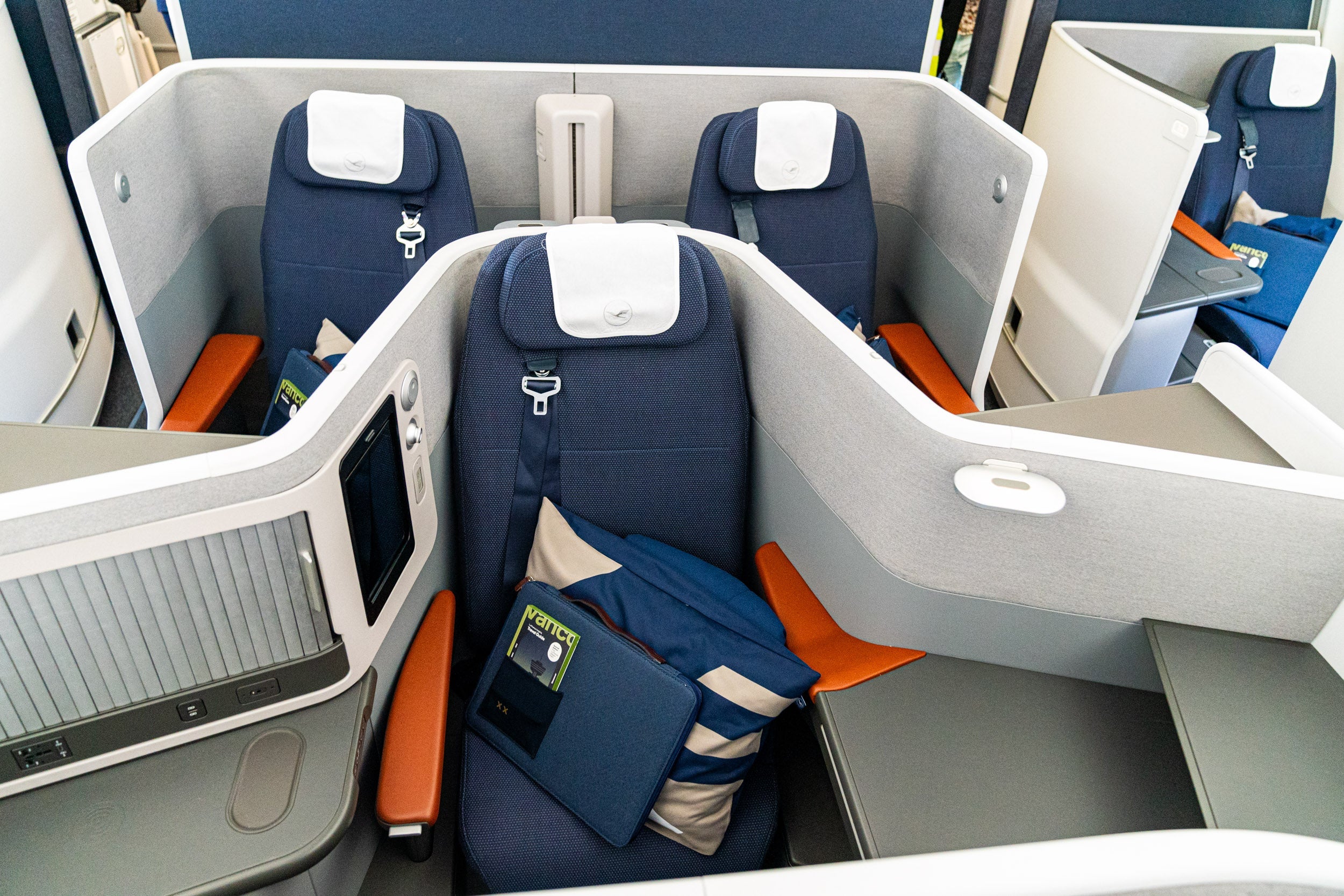 The Allegris cabin is a sharp improvement for Lufthansa. Despite some confusion about the way it differentiates the seats in business class, it seems that it would be difficult — if not impossible — to find a bad seat. (Do note, though, that the "regular" business-class seats — the window seats that are adjacent to the aisle — are fairly exposed, as is the case in any cabin with a similar staggered configuration.)