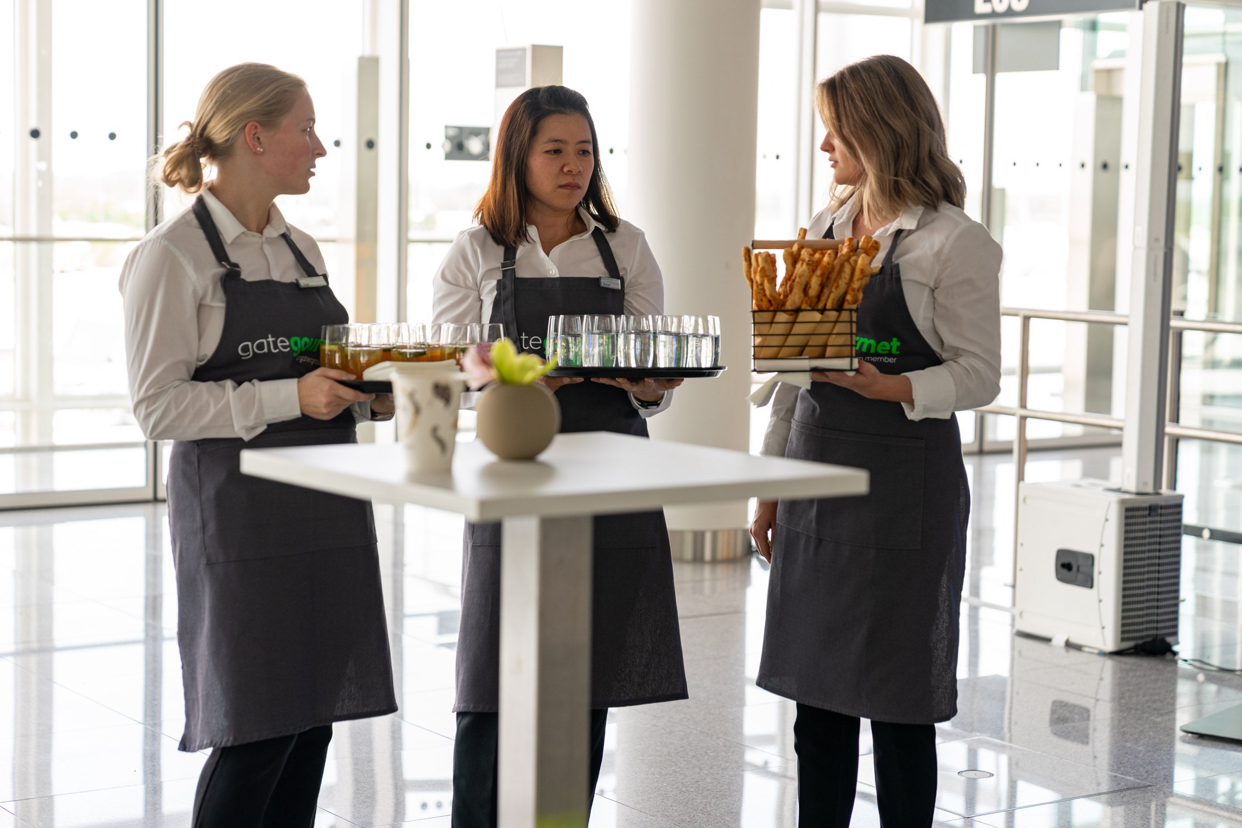 This inaugural flight started with a gate celebration that included drinks and snacks, plus freebies, music and speeches.