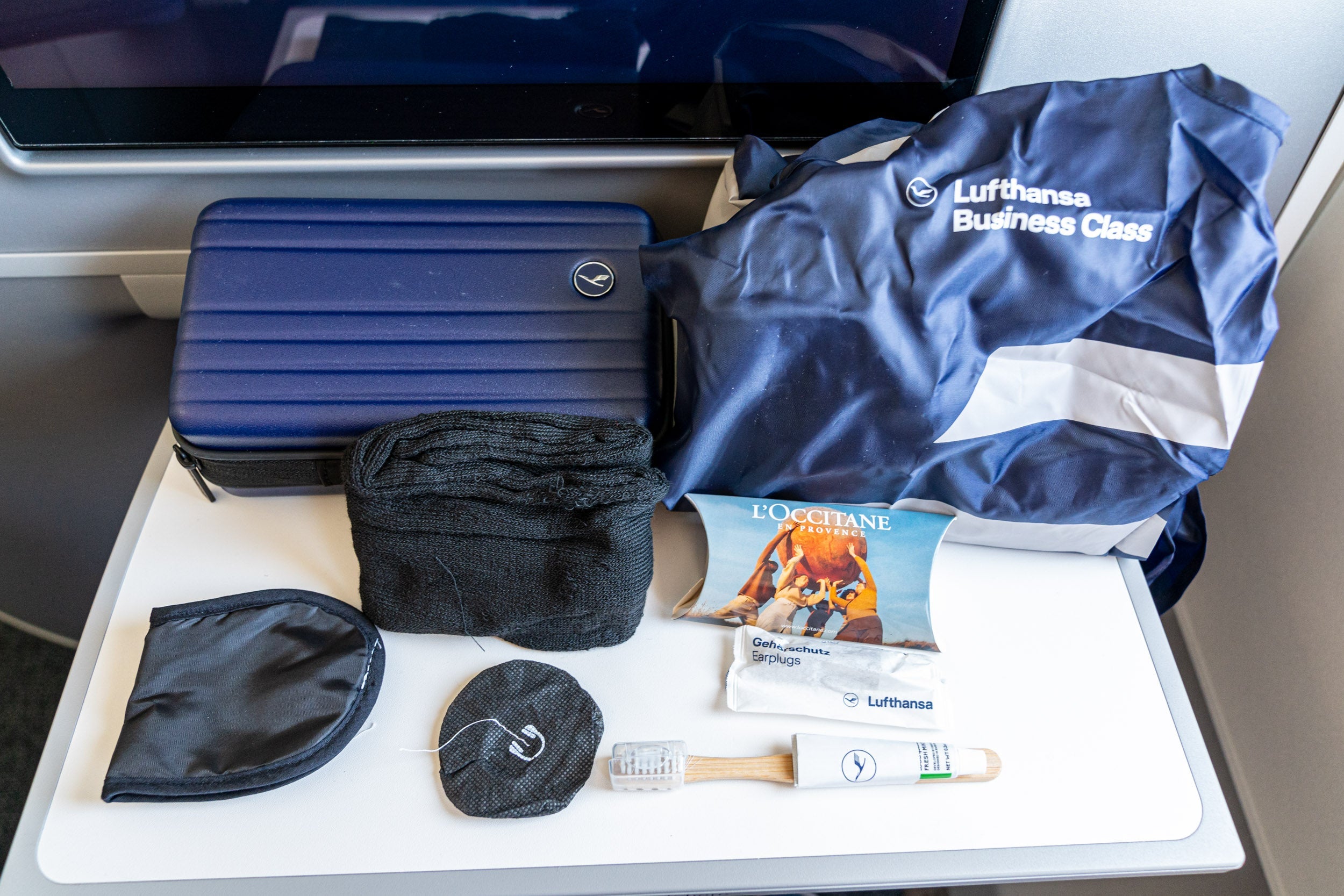 The amenity kit, meanwhile, came in a hard case — something that I find always feels a bit more special and premium than the soft-sided versions — and a special edition tote bag for the Allegris flight. The kit held all the usual items, like a toothbrush with toothpaste, an eye mask and earplugs, moisturizer and covers for the headphones, in case you want an extra bit of cleanliness.