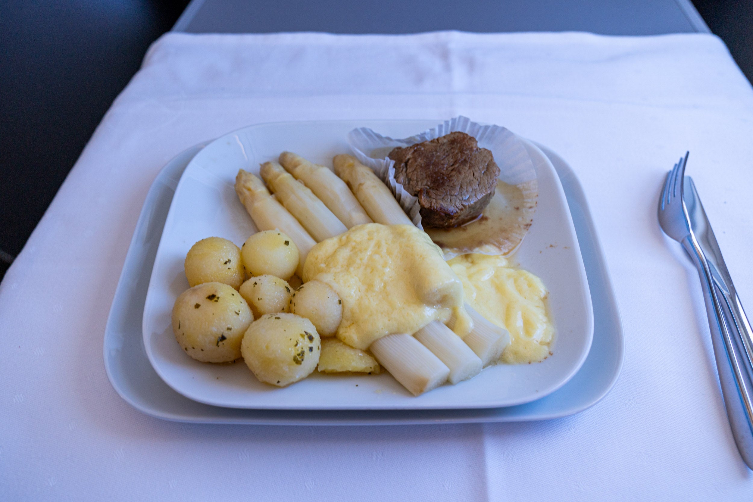 For my main, I opted for the veal steak with white asparagus and parsley potatoes in a hollandaise sauce. The overly white dish may not have been the most visually appealing — especially without the service tray — but it was nevertheless delicious.