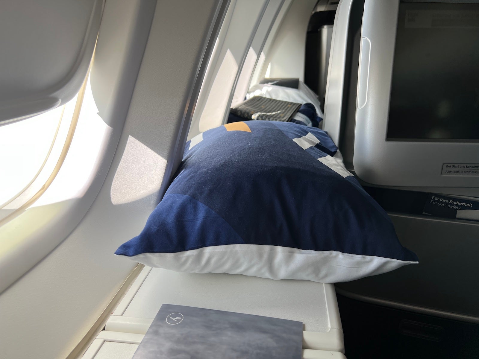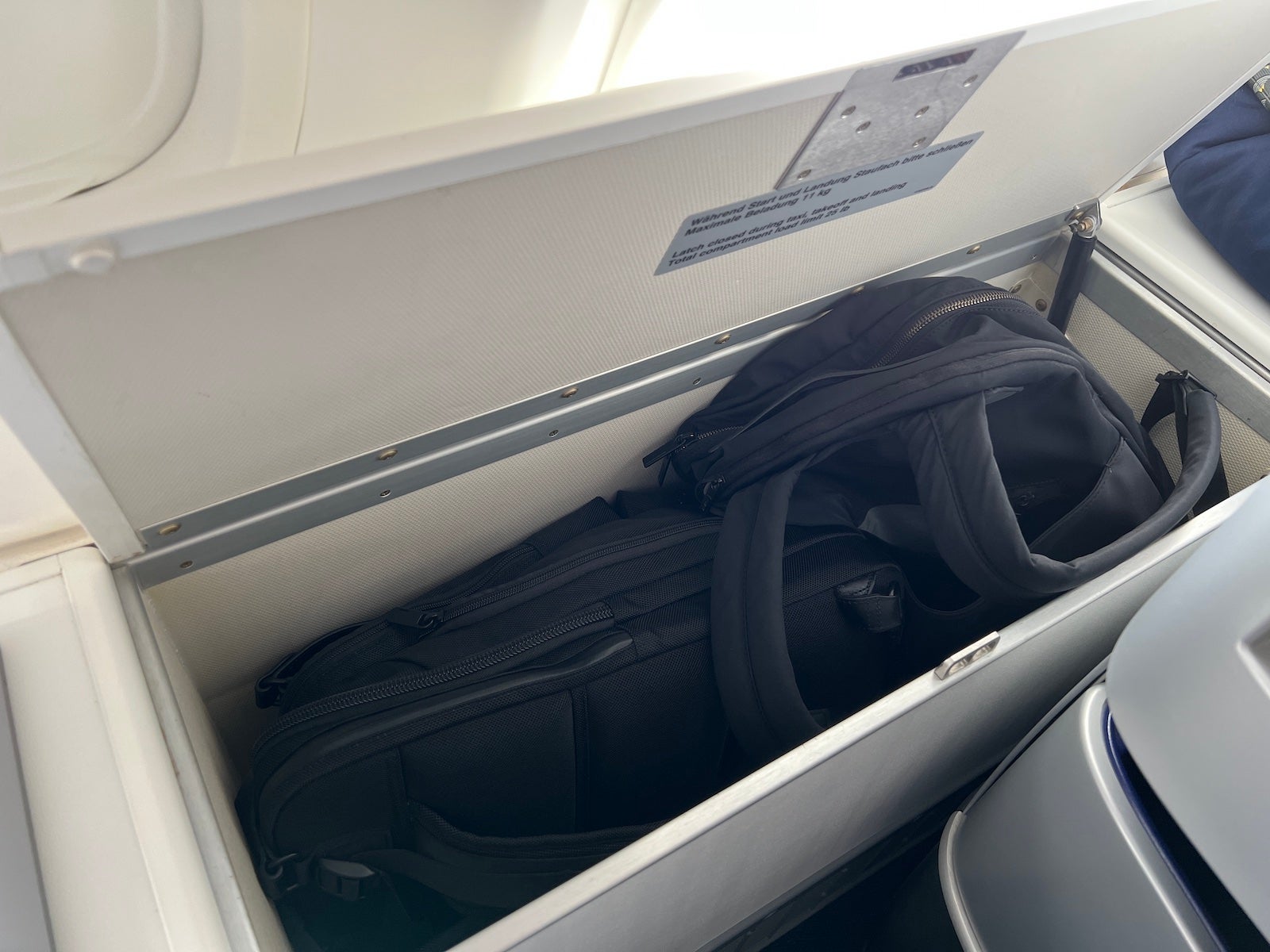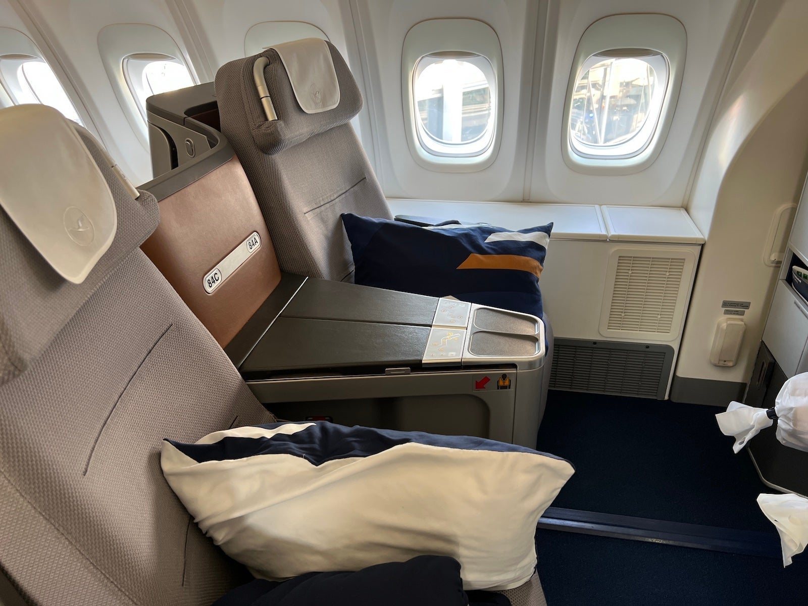 The side bins really made Lufthansa's somewhat-dated business-class hard product — one that lacks industry-standard direct-aisle access — a lot much better.
