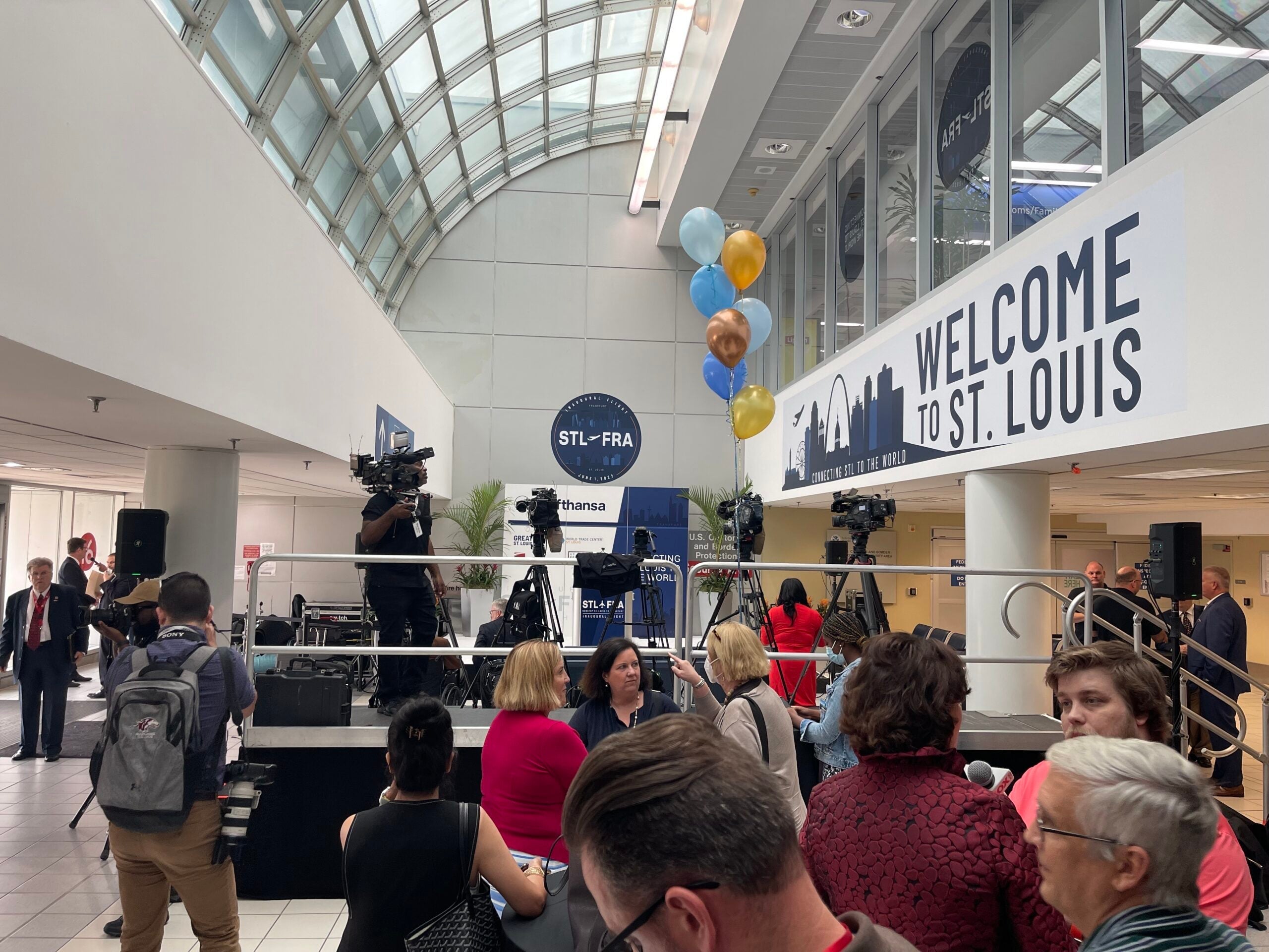 The energy was palpable in the room as balloons in Lufthansa's traditional palette of blue, yellow and gold drifted in front of signs that read "Connecting St. Louis to the World" while airport and Lufthansa executives chatted and local media gathered. For the first time in nearly 20 years, St. Louis' airport will have transatlantic flights.