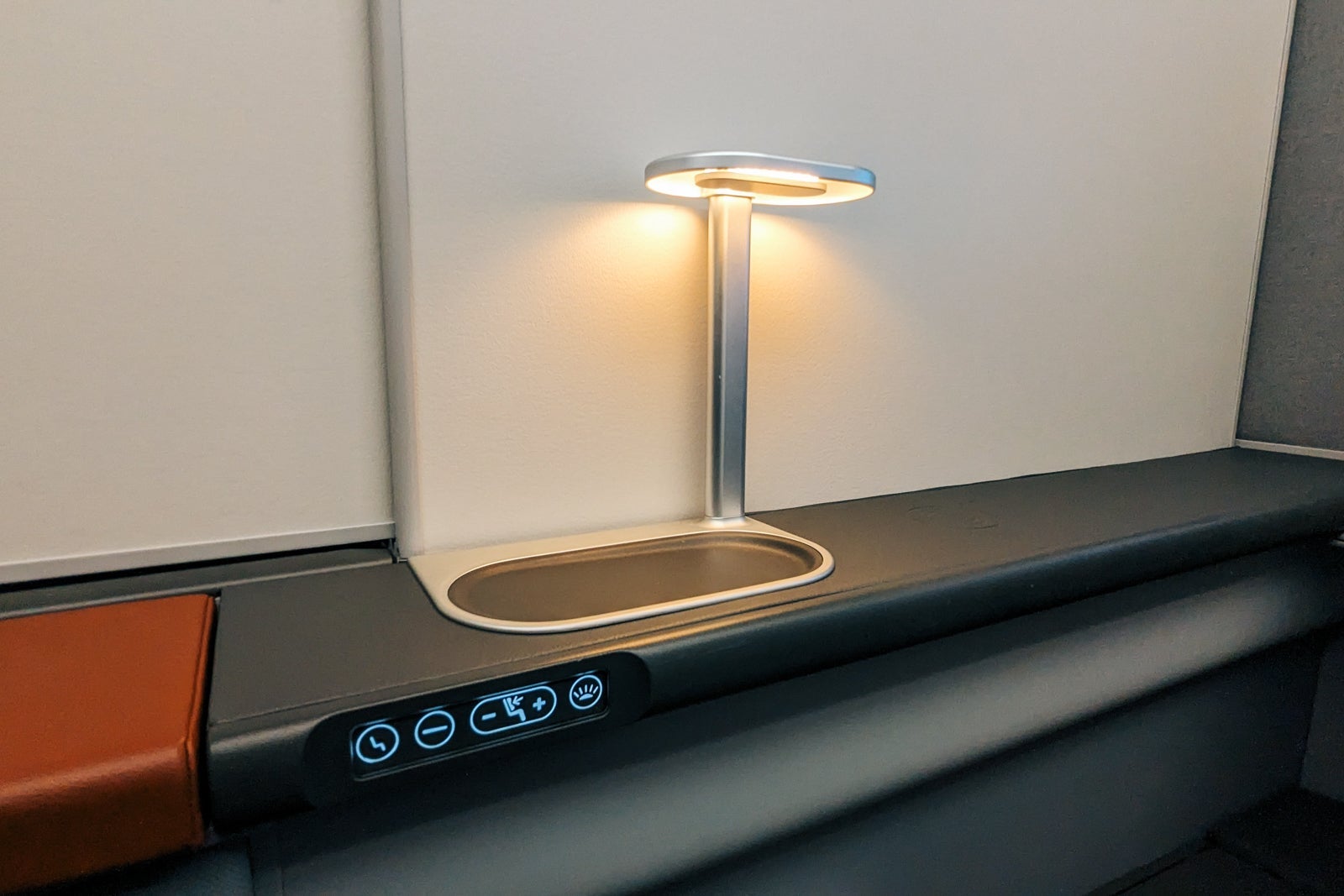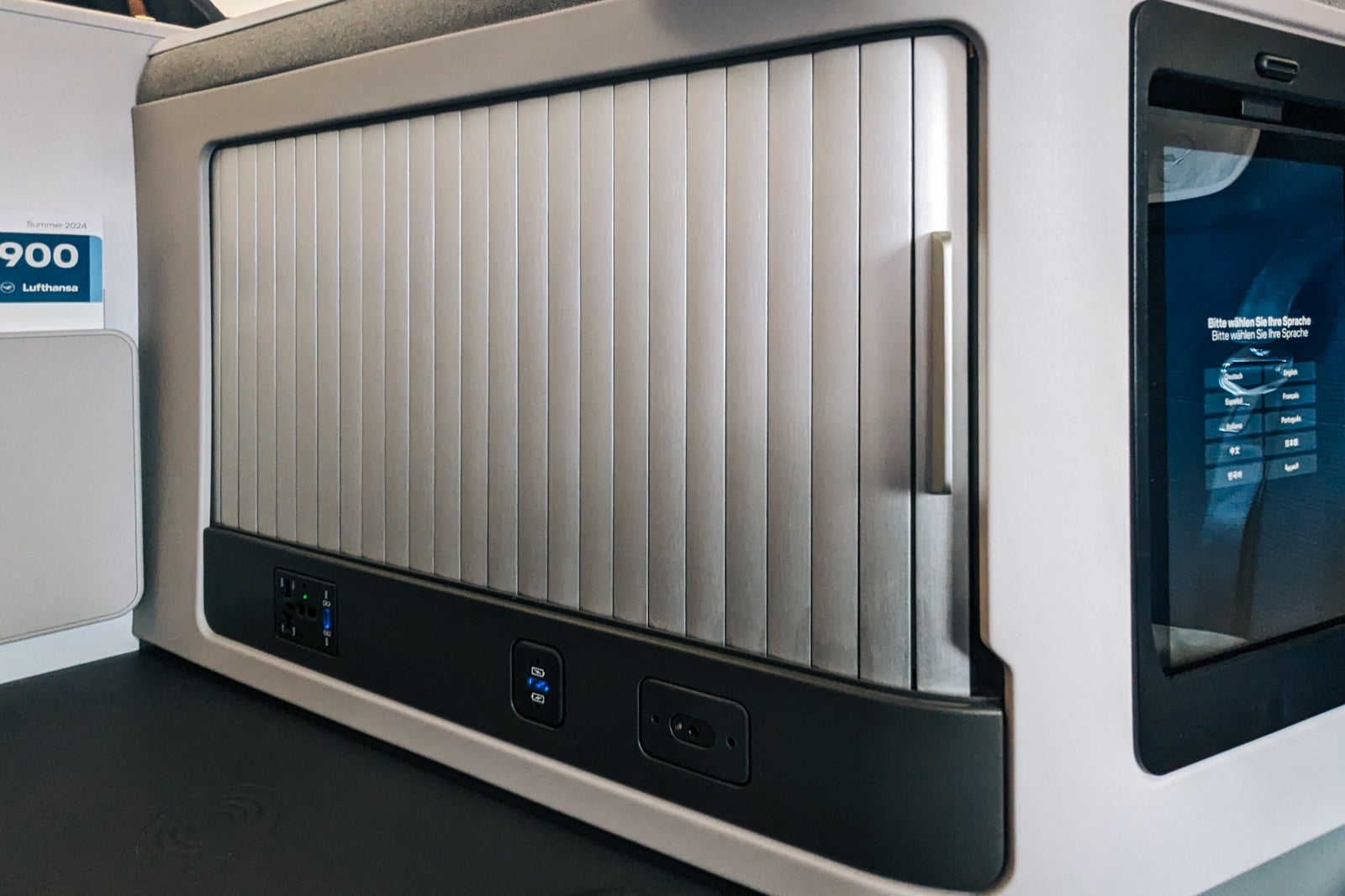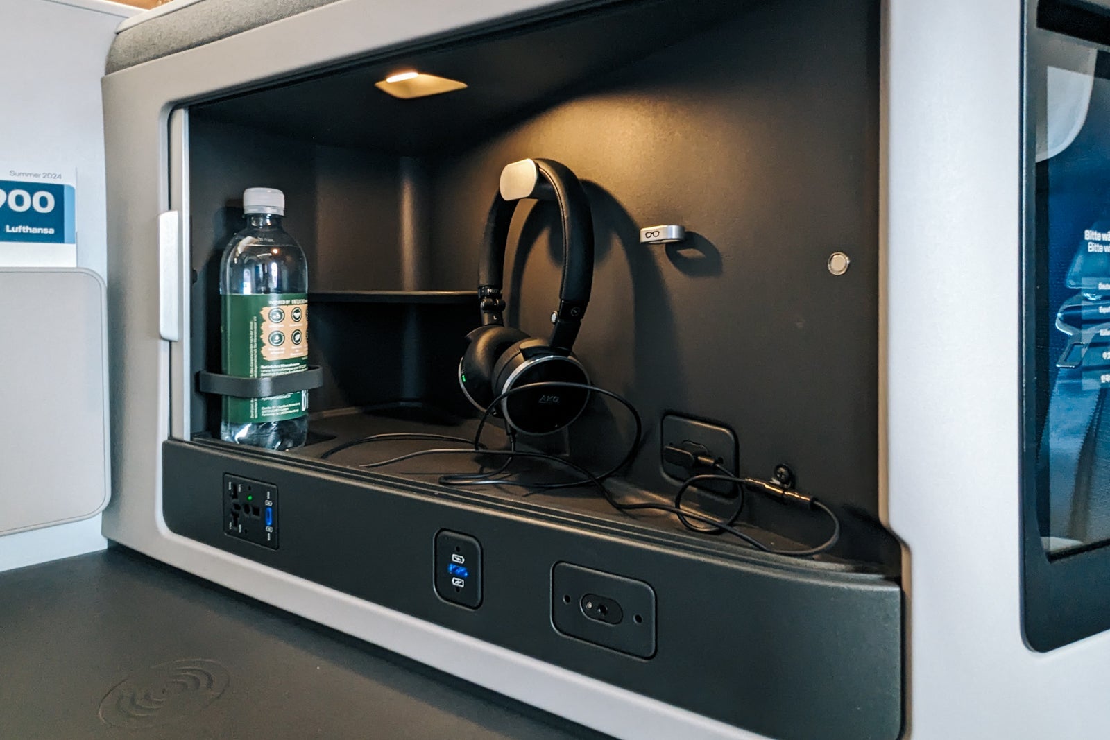 Some neat features in business class included stylish individual reading lamps, wireless charging and rollaway storage lockers for headphones, water bottles and personal electronics.