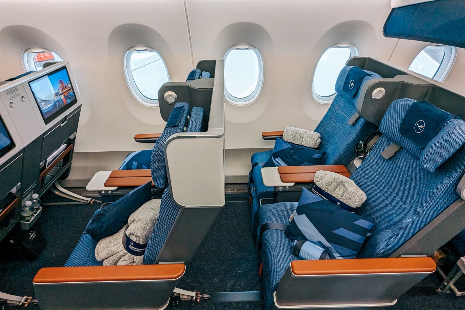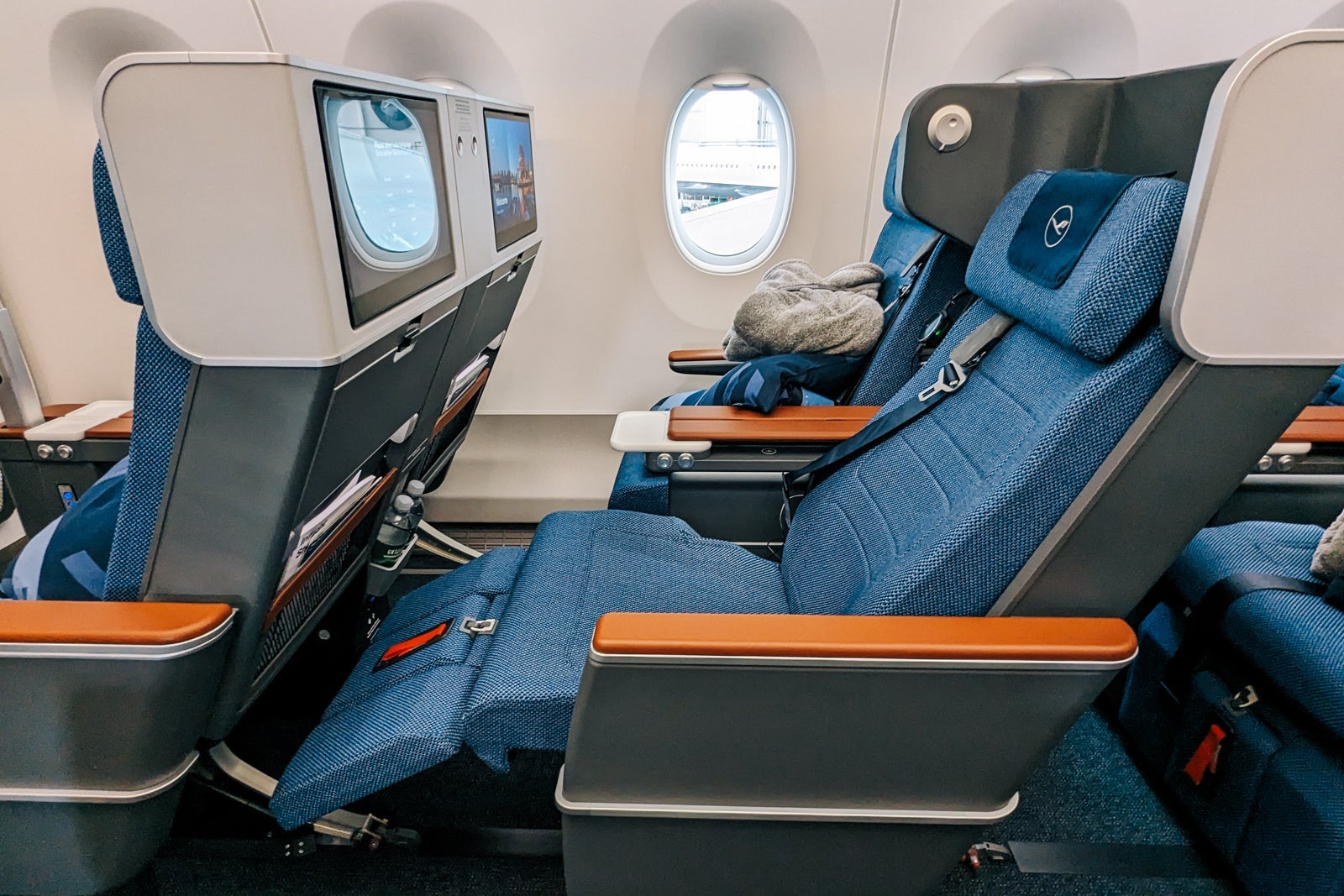 Also desirable are the "extra space" seats, where Lufthansa has taken inspiration from sister airline Swiss' "throne seats," with plenty of space on each side of the seat for personal items and electronics.
