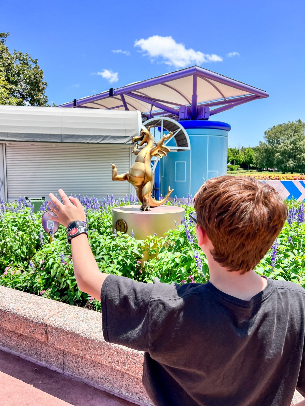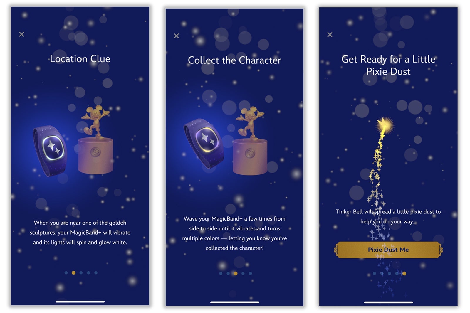 Using the Play Disney app, MagicBand+ wearers aim to locate 36 gold statues that represent the Fab 50 characters located throughout all four theme parks. When we got close to a statue, our MagicBand+ would buzz letting us know we were on the right track.