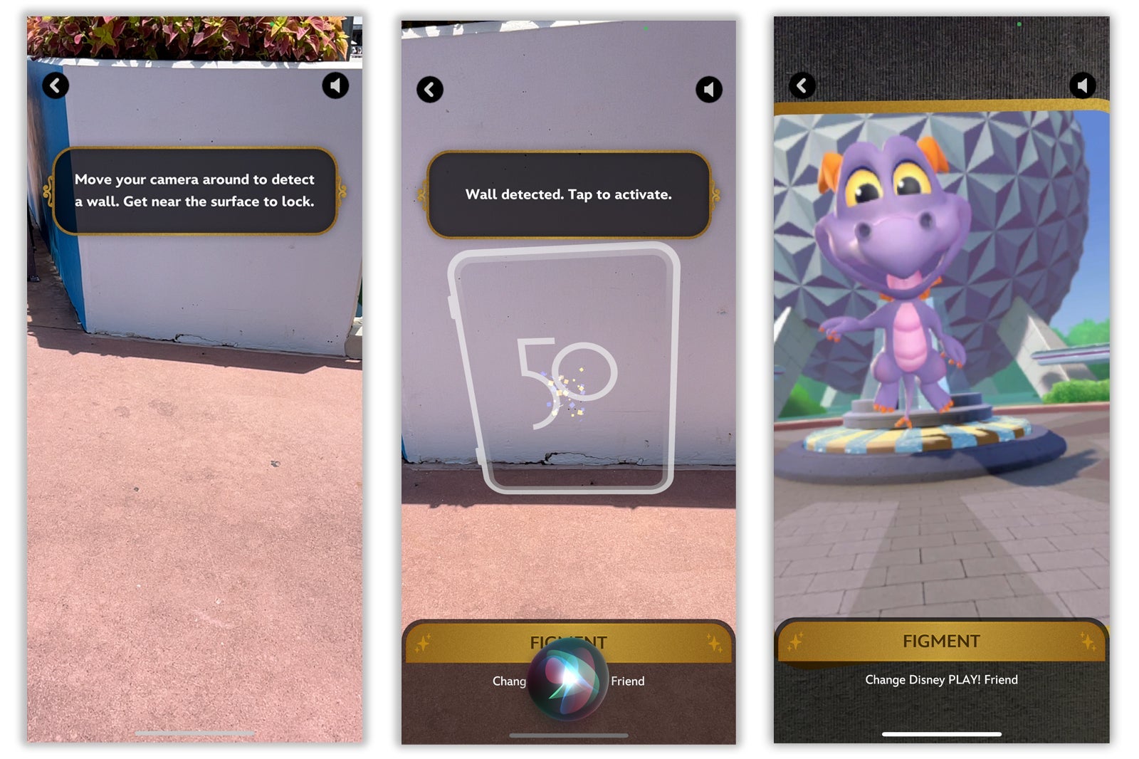 Once we found the statue, we waved our arms in front of it a few times per the instructions and were rewarded with different audio at each statue (themed to the statue, of course). After that, we were able to download the character in the Play Disney app and use the augmented reality functions to play with the new character in our collection. For those of you with Pokémon Go experience, it was very similar.