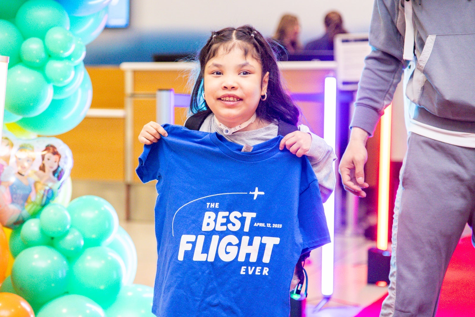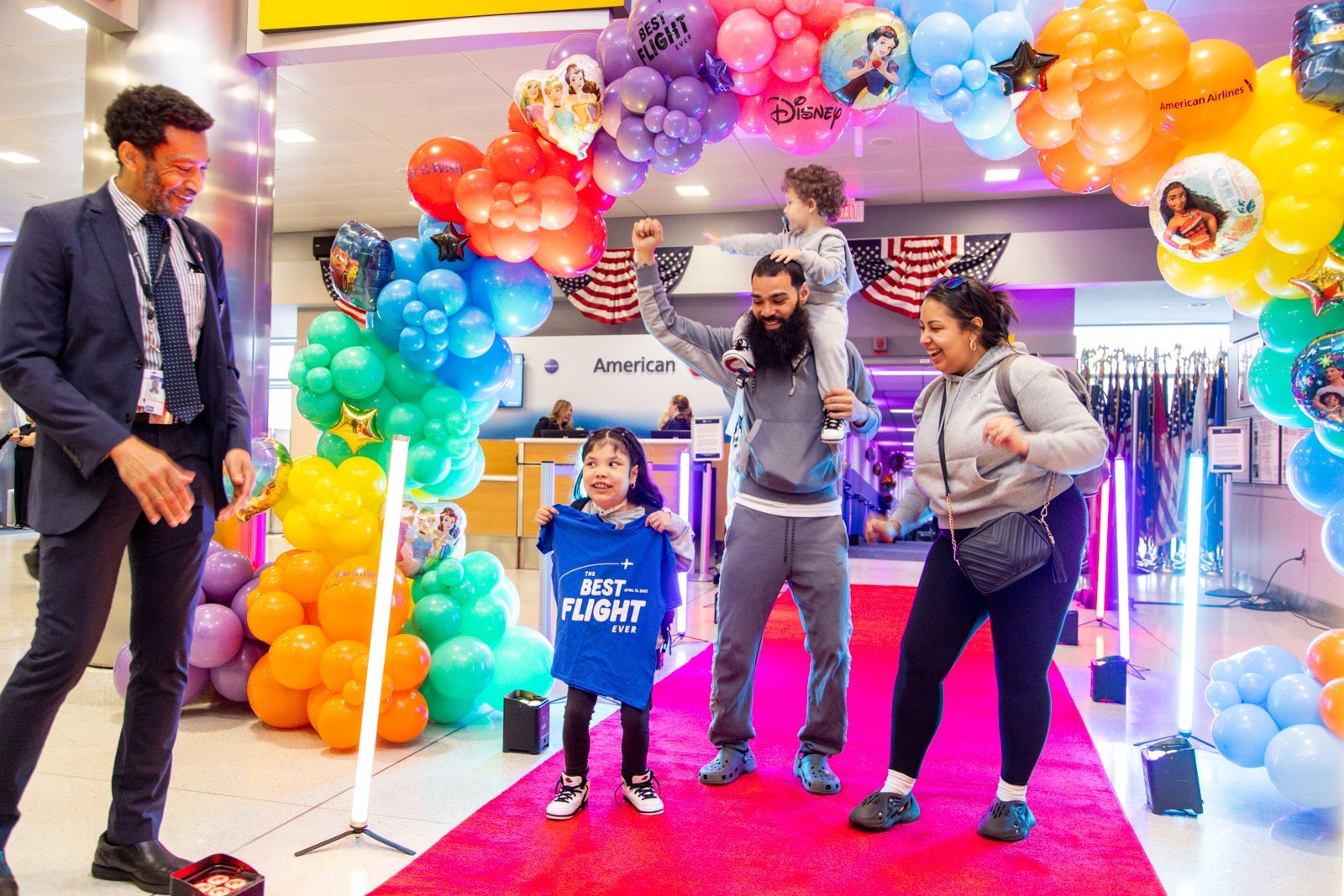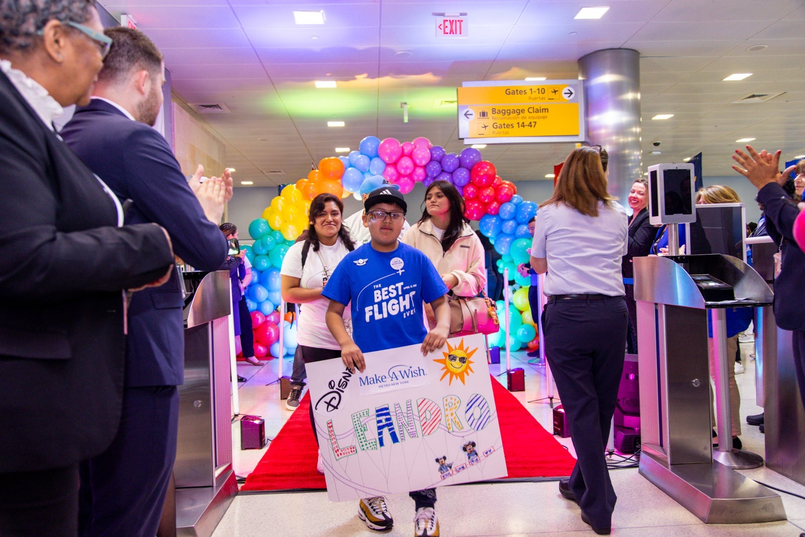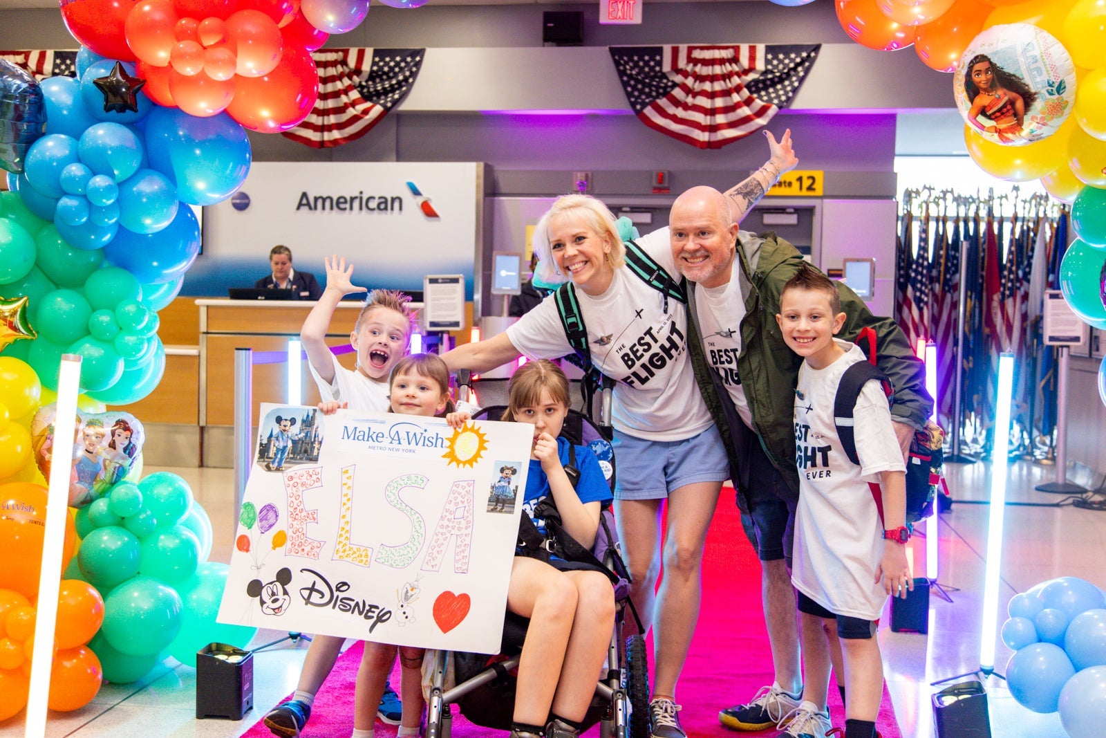 For these 26 kids and their families, the Best Flight Ever started with the best ride to the airport ever. The families arrived at JFK by car service and were greeted with balloons and an exclusive check-in counter upon arrival.