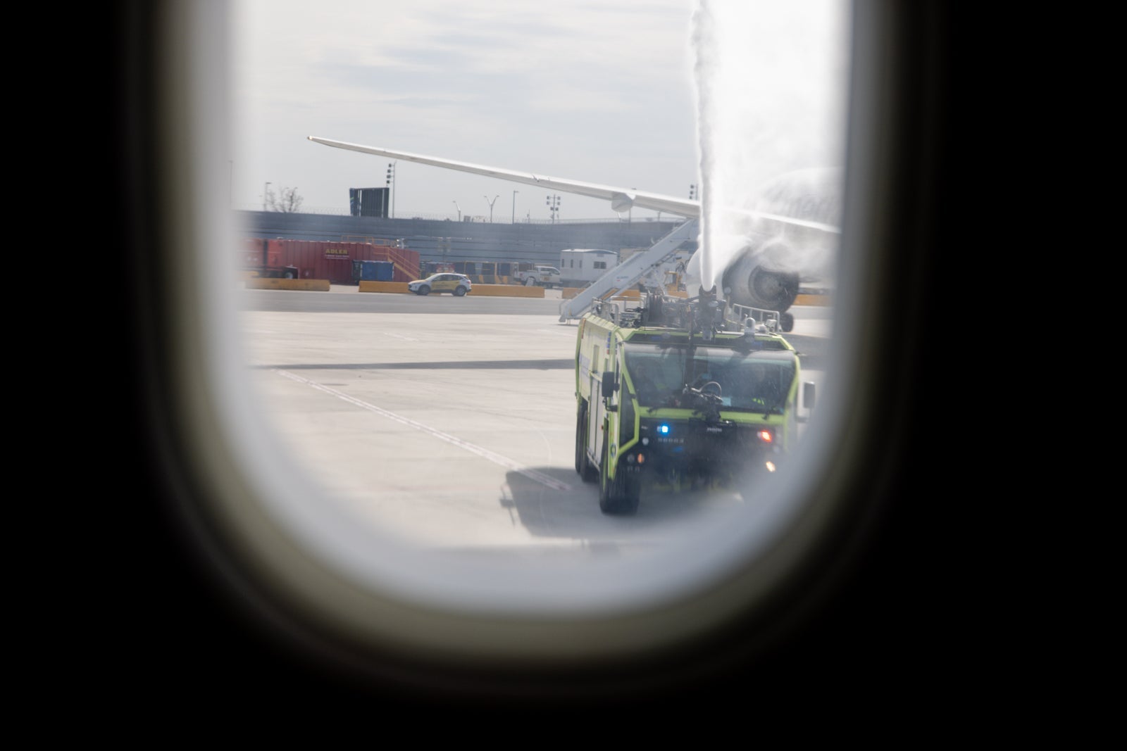 Once on board, the families were treated to a rare "water salute" where the plane taxied underneath sprays of water from firefighting vehicles on both sides of the plane.