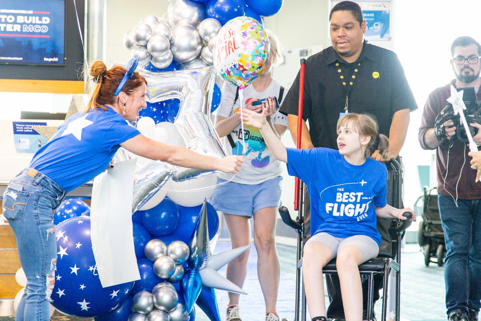 Passengers cheered upon landing as they were surprised with a second water cannon salute before deplaning. Dozens of cheering Make-A-Wish staff members and volunteers welcomed the kids to Orlando.