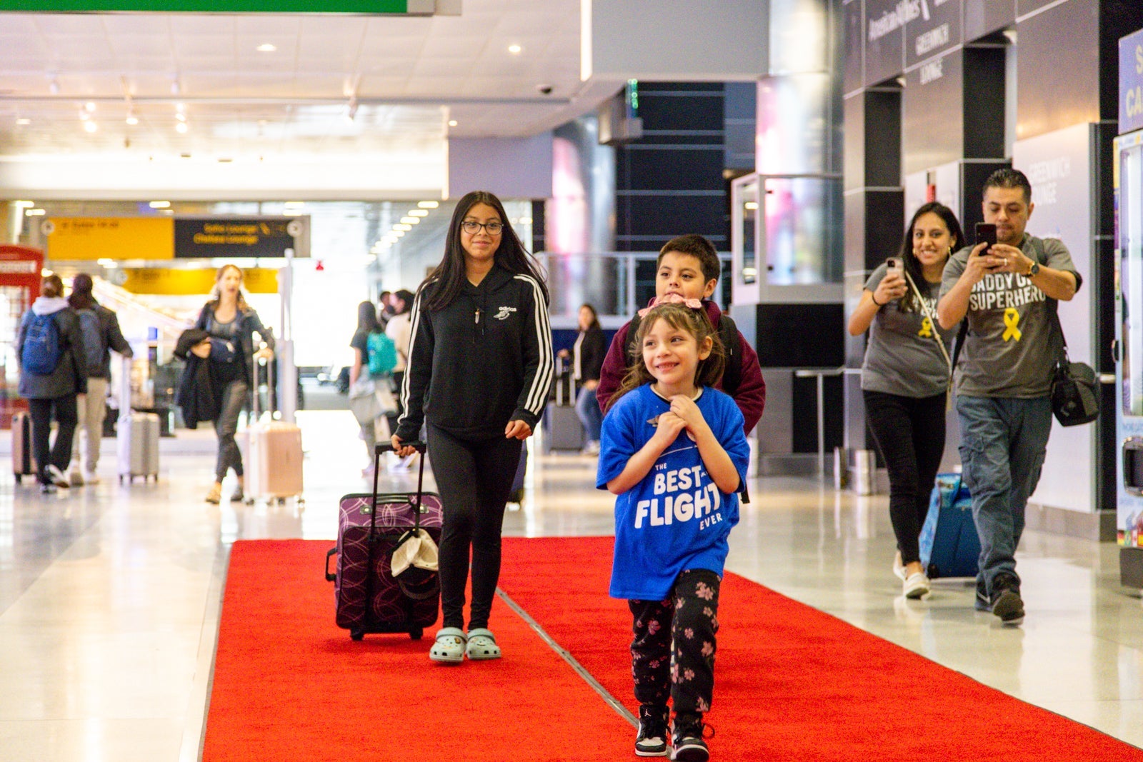 After passing through security and being escorted to a private gate area, the kids were welcomed in style with a red carpet and a master of ceremonies announcing their arrival.