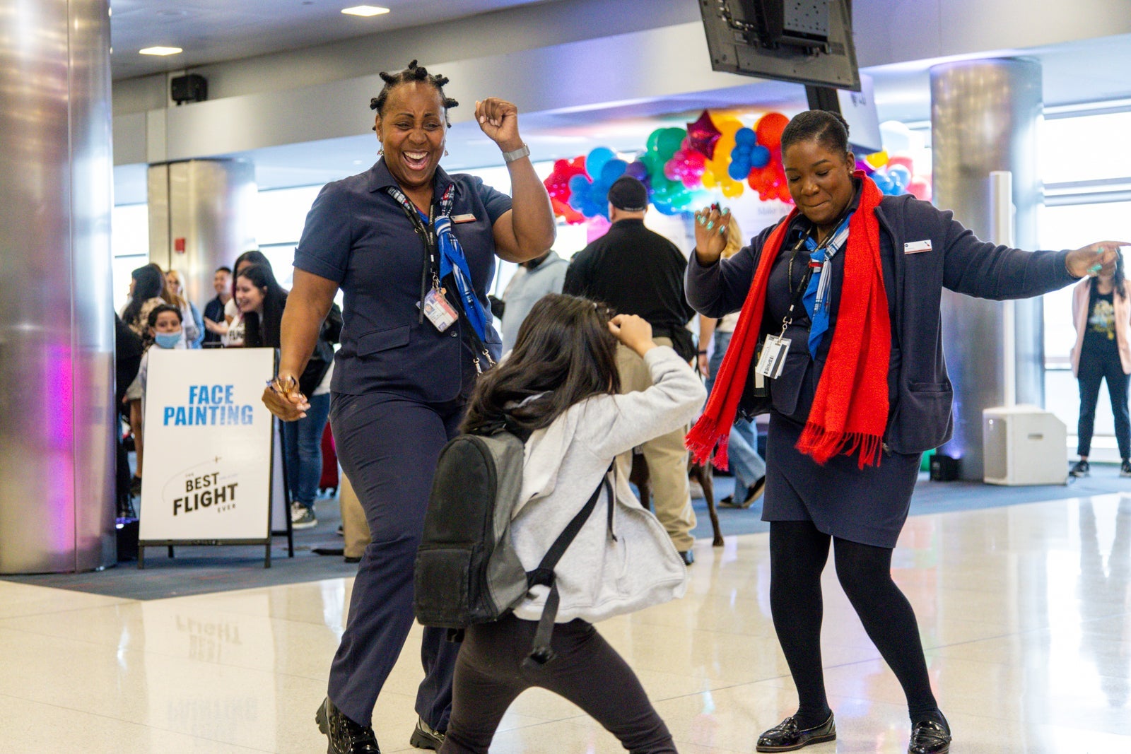 A flight where everyone is excited to see you and cheers upon your arrival. There's a red carpet, colorful balloon arches, plenty of friendly faces ready to lend a hand, free and unlimited snacks, dancing and face painting at the gate and even free hot food on board.