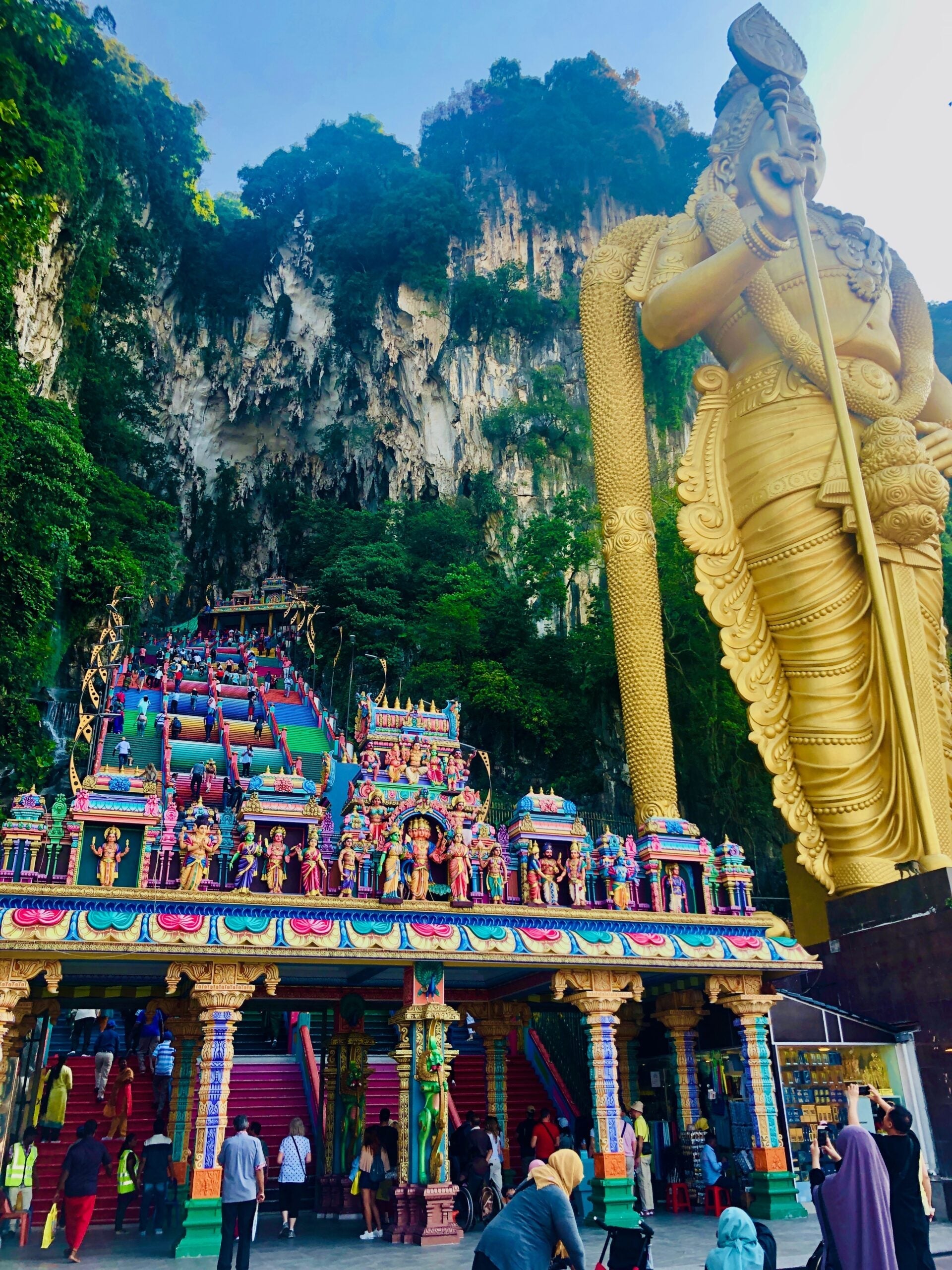 Make sure to hit the Batu Caves, just a short ride outside of the city. This is the temple with the infamous rainbow steps plastered all over Instagram, but don't only go for getting the perfect shot. At the top of the 272 steps is a Hindu temple in an actual cave, hence the name. Expect to see monkeys along the way and even a small waterfall. Before you head back into the city center, make sure to grab a masala dosa from one of the many Indian restaurants in the area. Batu Caves gets extremely packed due to its popularity, so it's recommended to get there as early as possible to avoid the crowds.