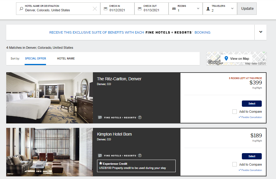 And, here's an Amex FHR search for a stay in Jan. 2021: