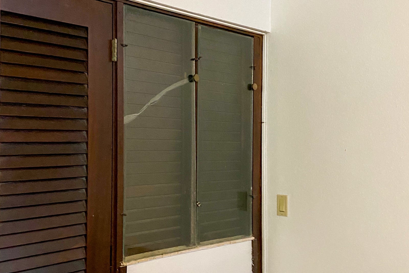 The windows had giant diagonal cracks and the electrical outlets were exposed. Where a television was supposed to be on the wall was just a blank space with wires snaking from it.