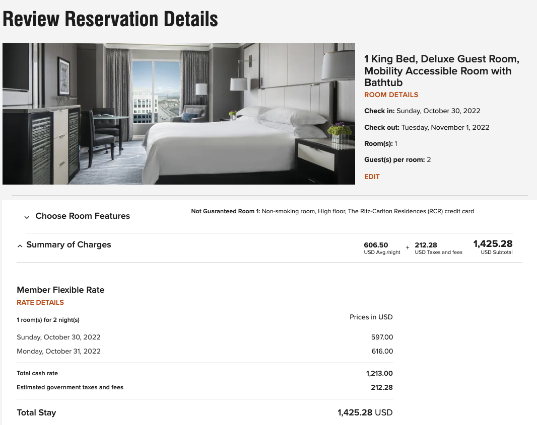By paying two credit card annual fees (totaling $220), I was able to achieve $1,141 in value this year with a luxury weekend at the Ritz-Carlton to attend a football game.