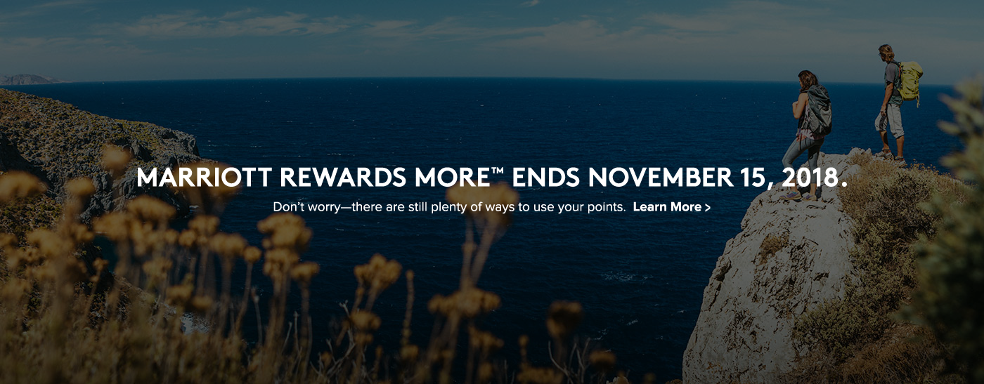 The world's largest hotel group announced the program's sunset, simply posting a banner on the Marriott Rewards MORE landing page stating, "Marriott Rewards MORE ends November 15, 2018. Don't worry — there are still plenty of ways to use your points." No further communication was made.