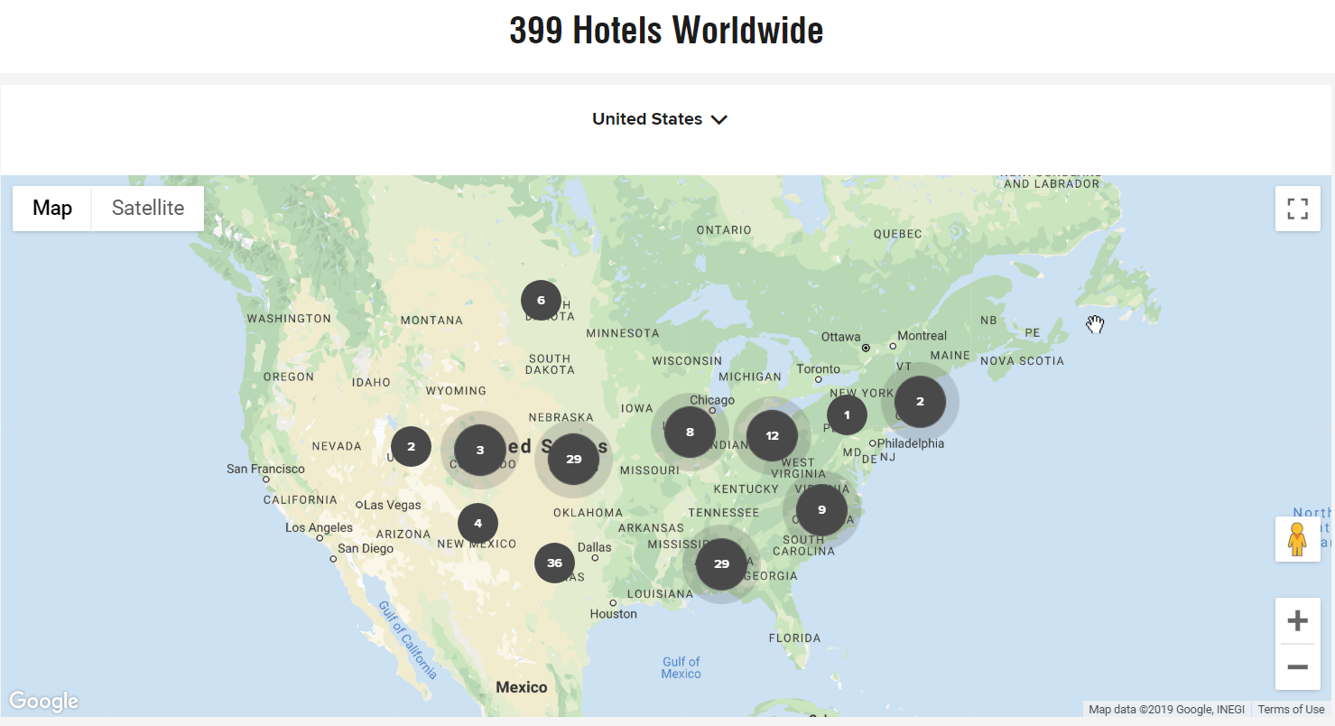 I opened the Marriott hotel directory, filtered my search to Category 1 hotels, and clicked on my region.