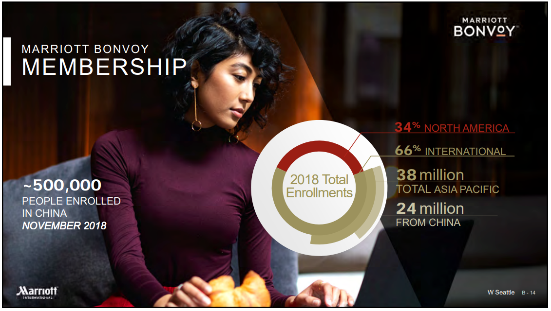 Despite huge problems integrating the Starwood and Marriott loyalty programs, Marriott said the program's user base has grown hugely in the last year. At the end of 2018, Marriott had 125 million members in the Bonvoy program, and said it's adding 1.5 million new ones every month. A huge part of that growth comes from China, with 500,000 enrolling in November 2018 alone.