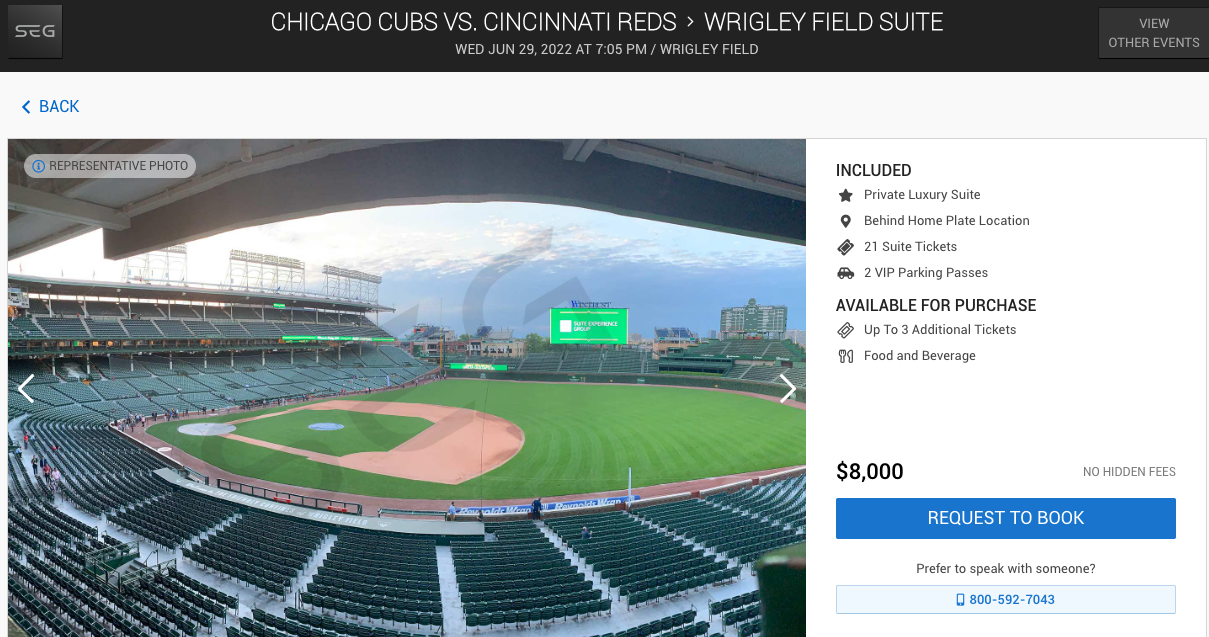 As an example, two tickets in a Luxury Suite at Wrigley Field sold for 55,000 Marriott points. That's $467 in Marriott points, per TPG valuations. The package even offers free food and drinks while in the suite.