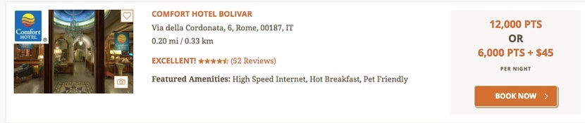 Last January, Choice introduced Points Plus Cash, where Choice Privileges members can redeem 6,000 points and "buy" the rest of the points needed for the redemption at a cost of $7.50 per 1,000 points. For example, a redemption that is otherwise 20,000 points would be 6,000 points plus $105 ($7.50 x 14 to buy 14,000 points, or 0.75 cents per point). And if you cancel your booking within the cancellation period, all the points — including those you "bought" for the redemption — go back into your account.