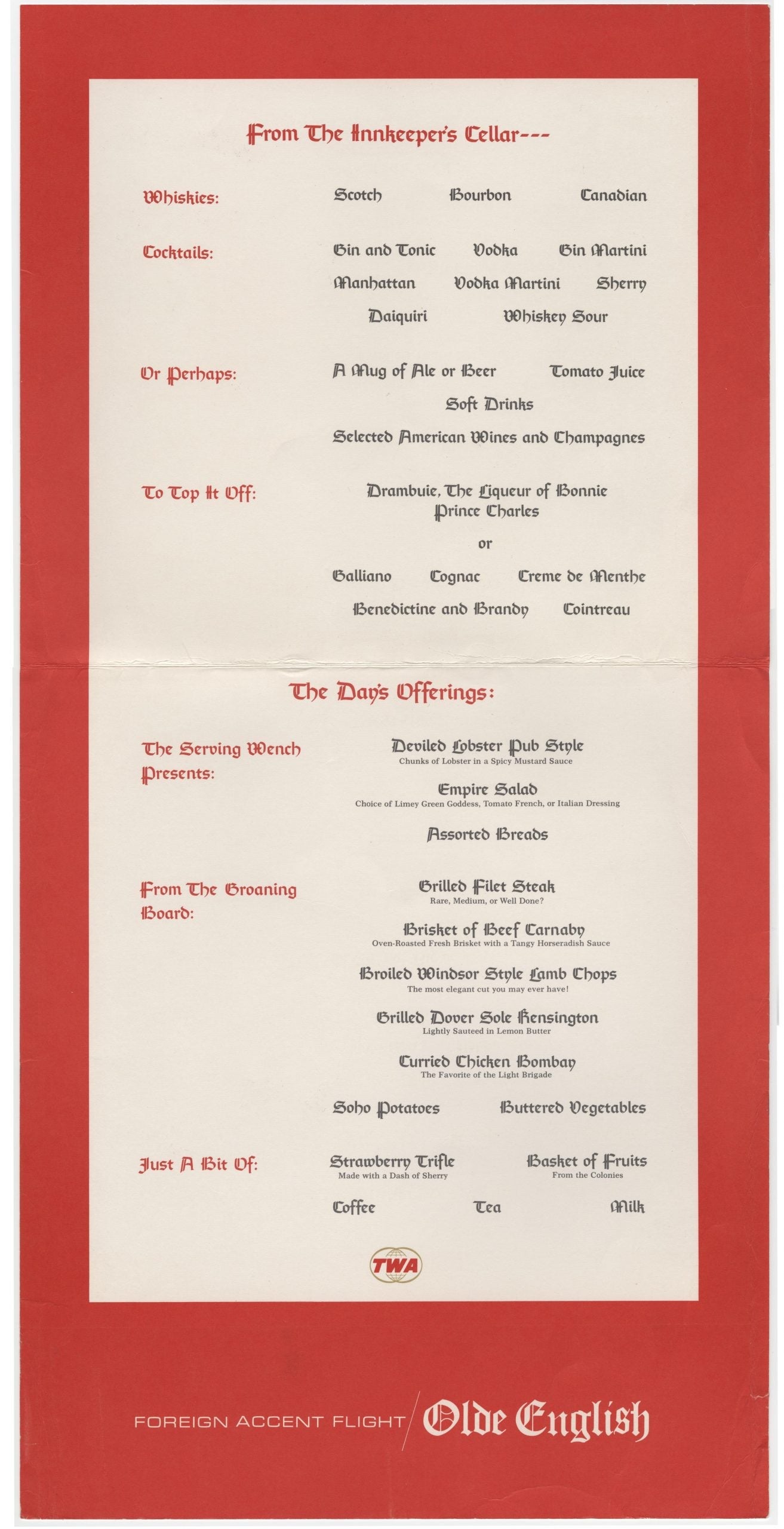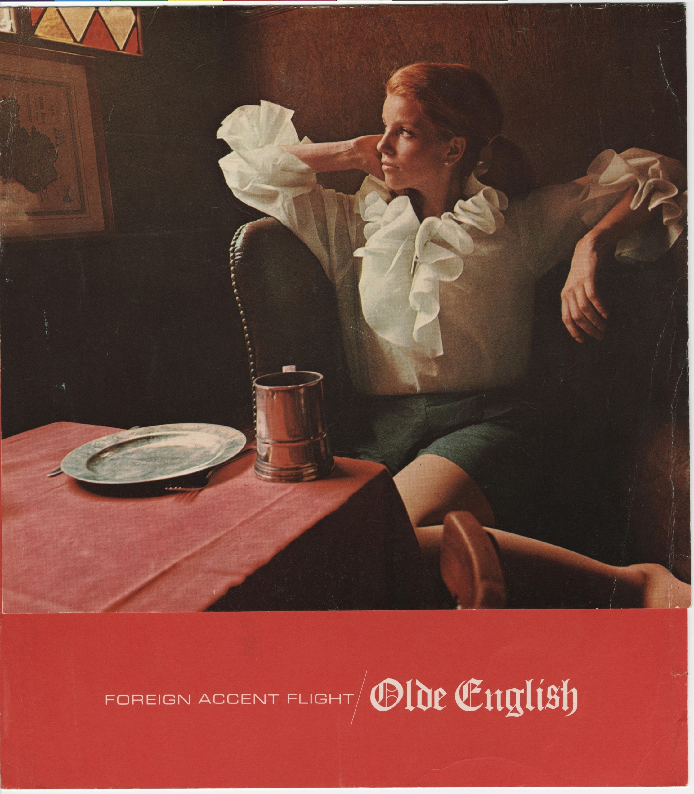 Foster noted that this "Olde English" themed menu was folded so that one leaf is wider than the other. "Serving Wench" definitely conjures up how different things were in the 1960s.