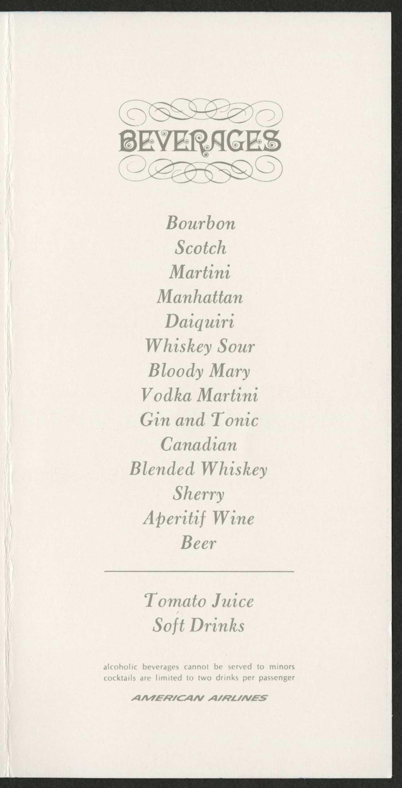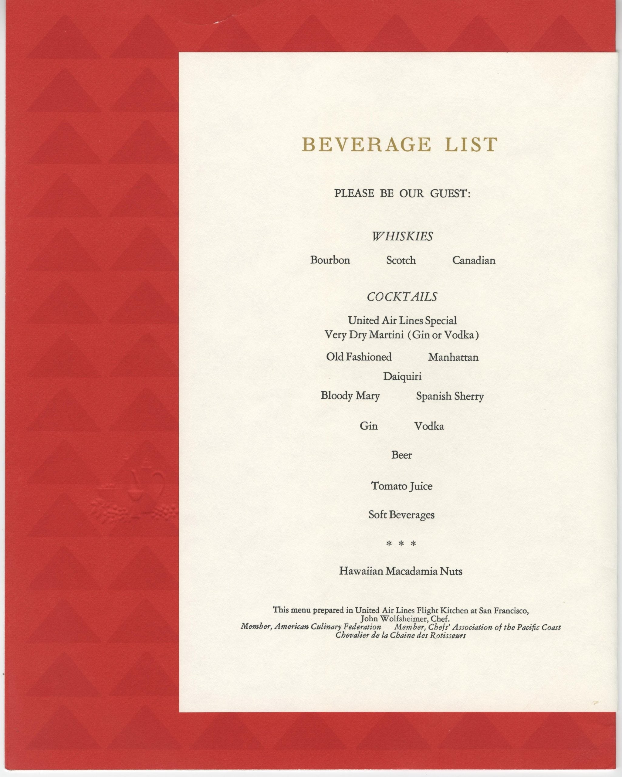 This flight was too short for a full meal. But a full bar was on the menu, including popular cocktails of the day, along with soft drinks.