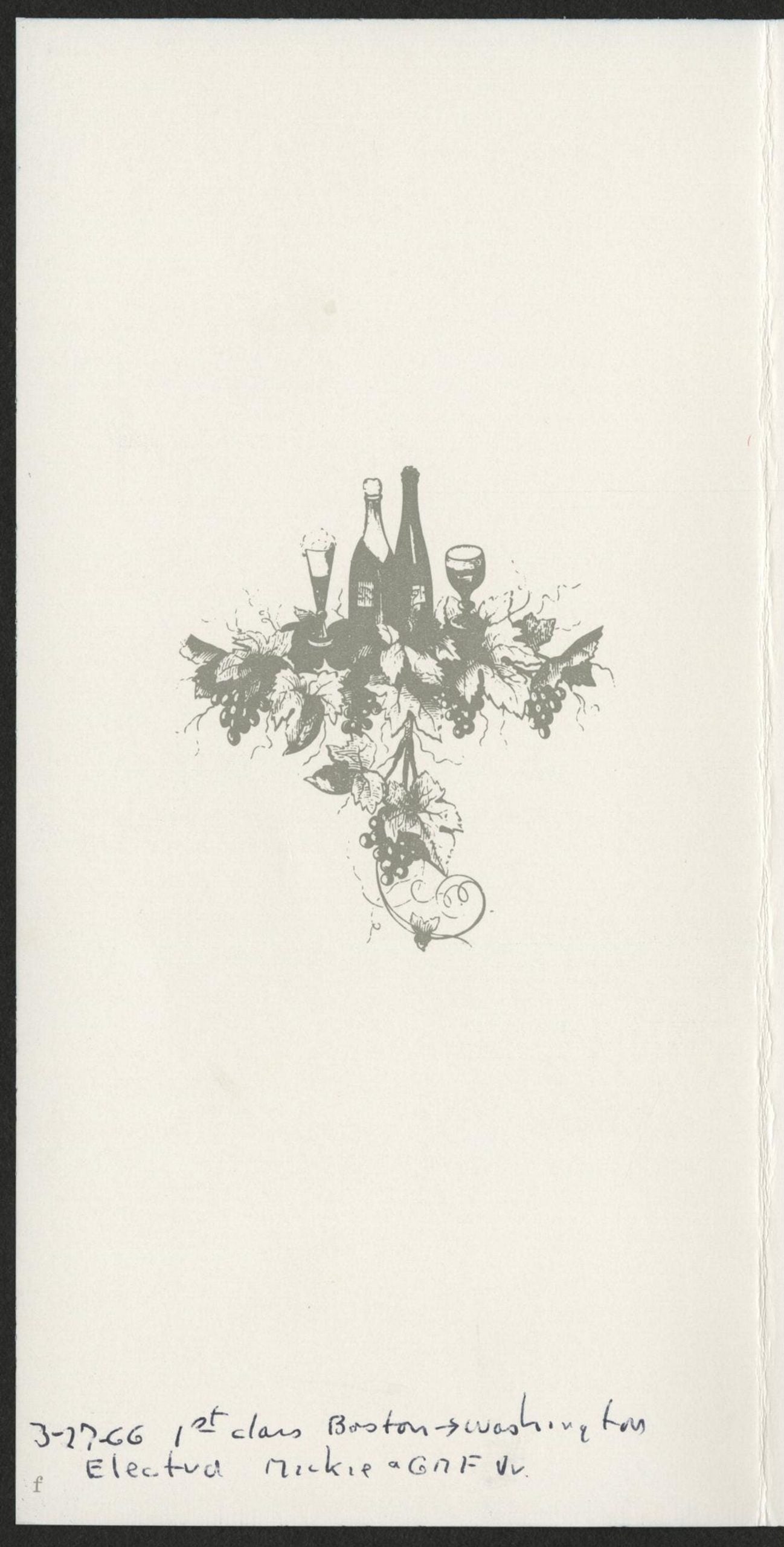 The majority of the collection was donated by George M. Foster, a pioneering anthropologist and Northwestern alumnus, who took his first commercial flight in 1935. He ended up flying hundreds of times, as well as traveling by rail and boat, for his anthropological research and as a consultant for such agencies as the World Health Organization and UNICEF. He collected remembrances of his travels in the form of inflight or onboard menus, which he donated to the Transportation Library in 1997.