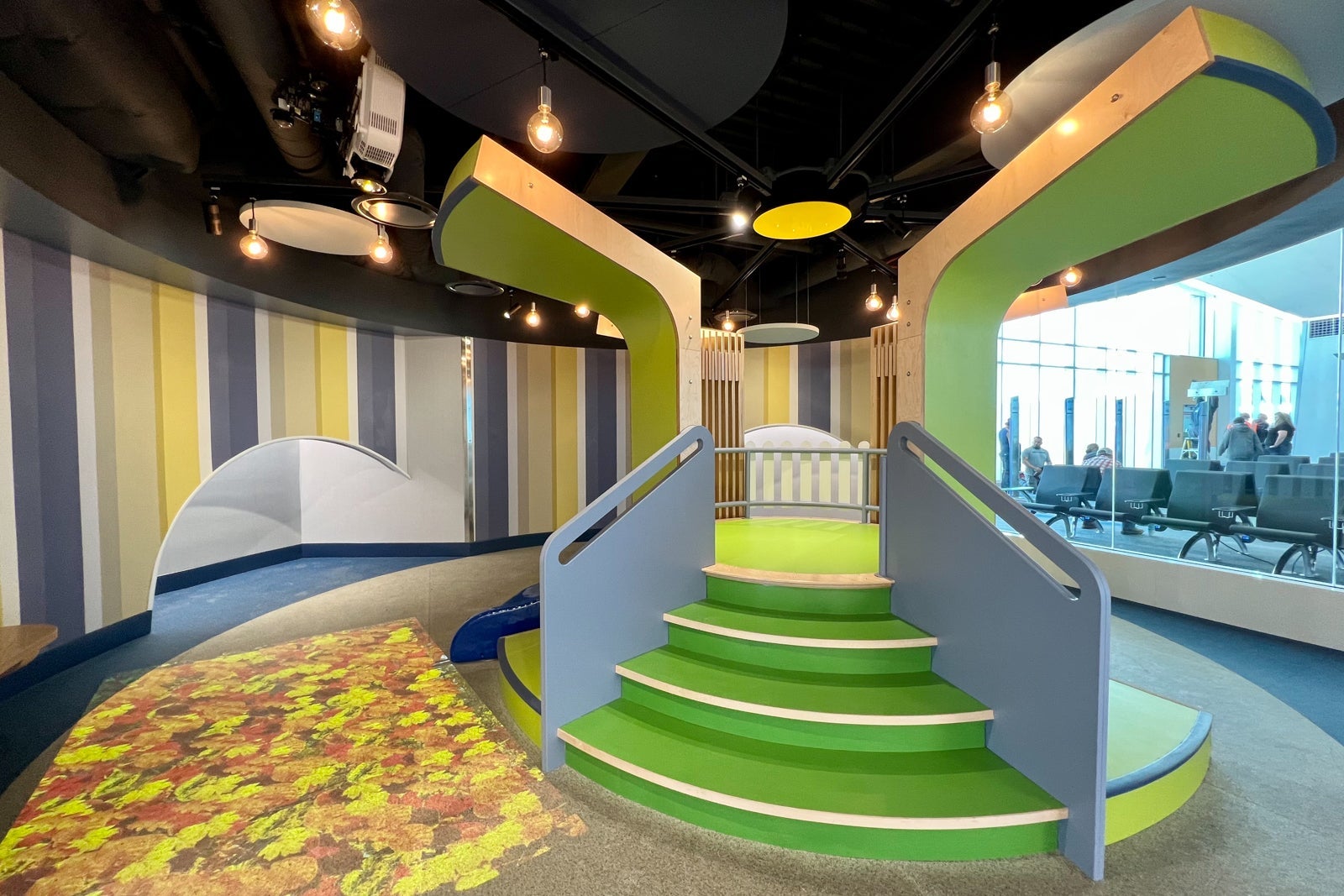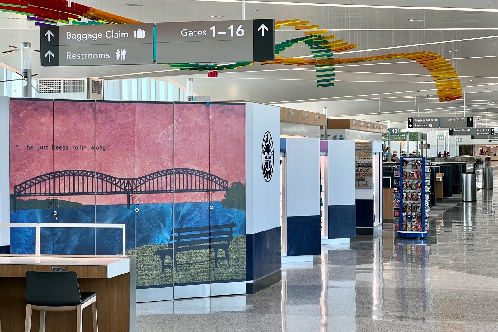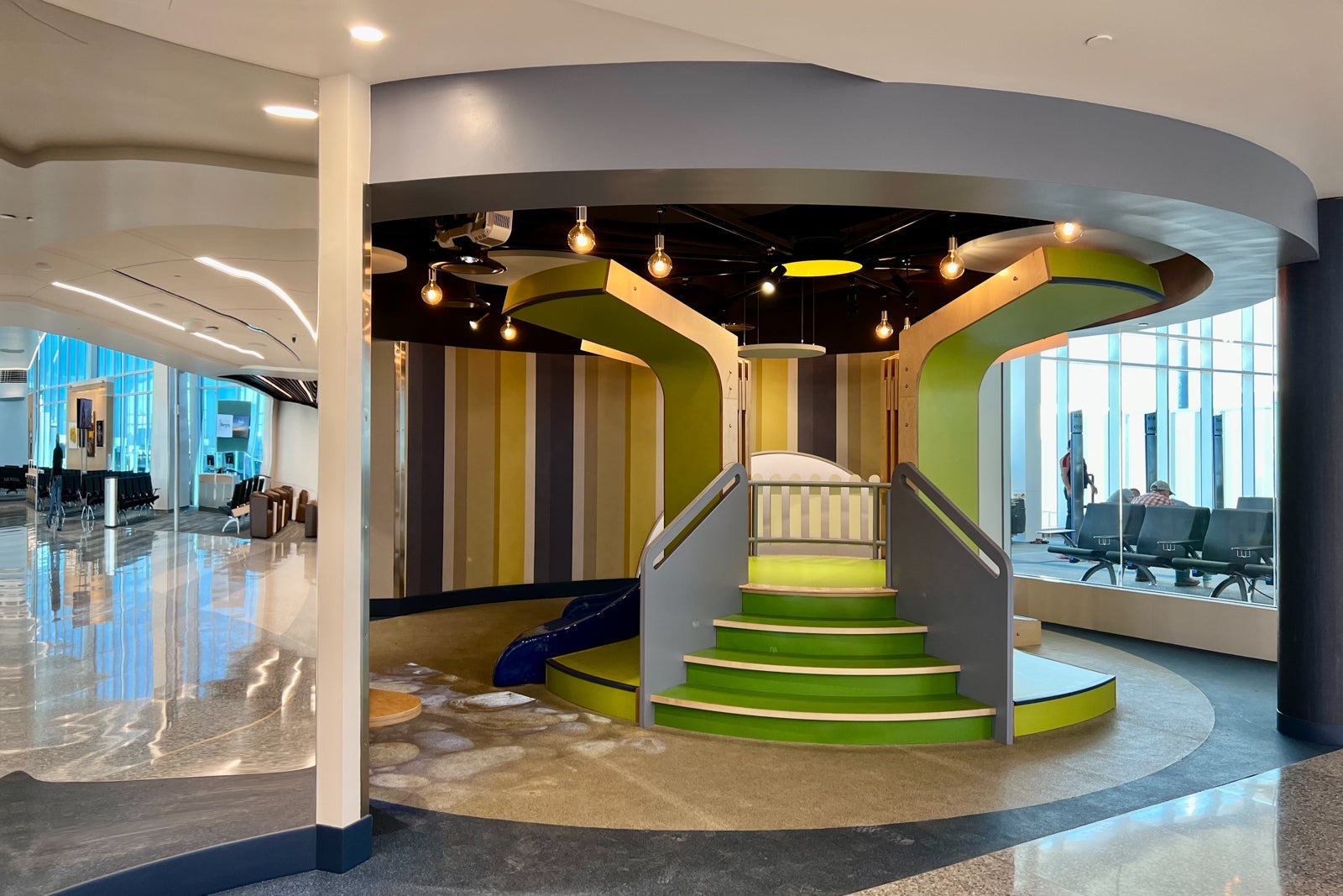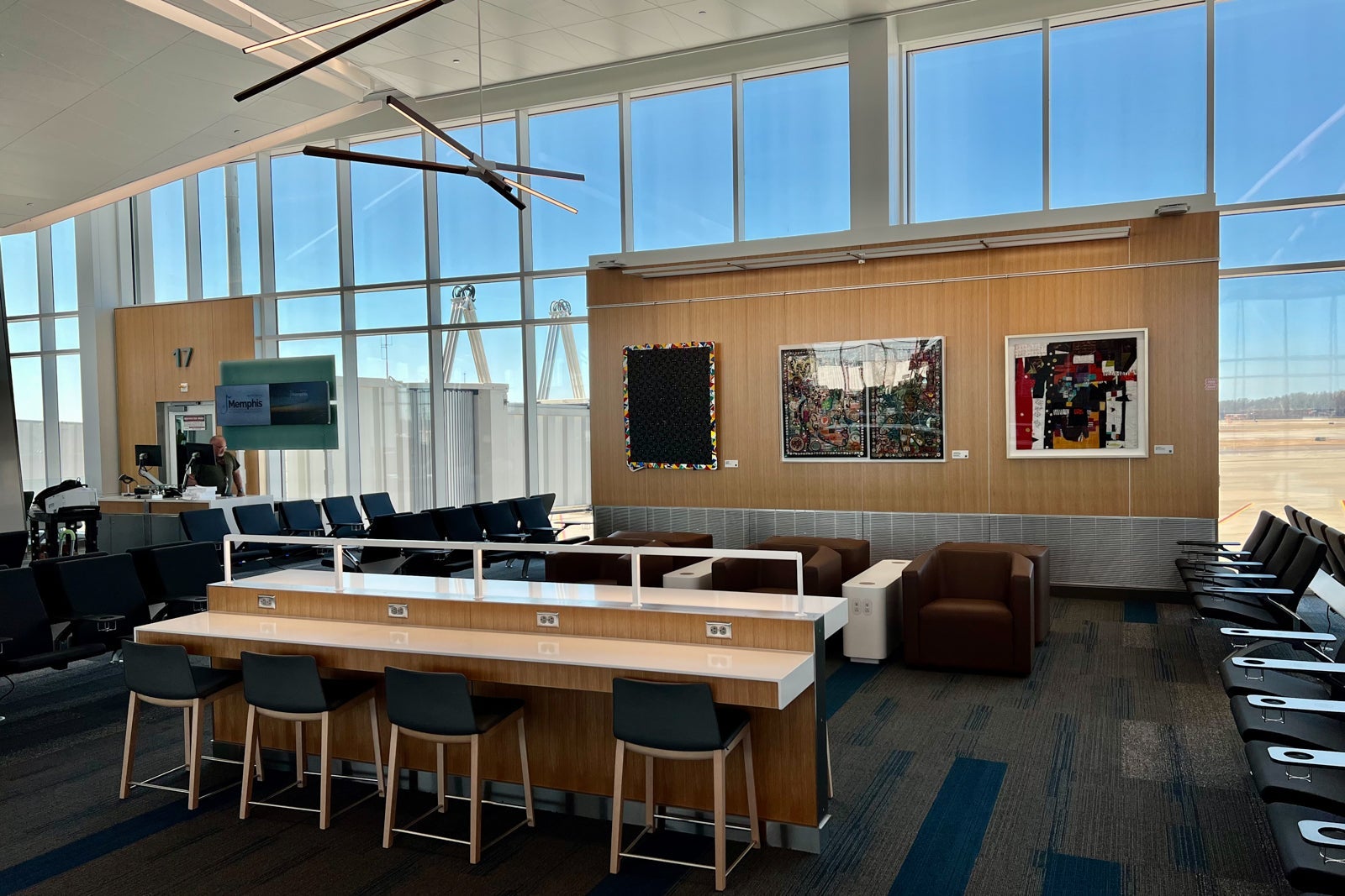 In addition to the art, there are two lounges in the terminal: one dedicated to families traveling through the city for the St. Jude Children's Research Hospital and another for members of the military.