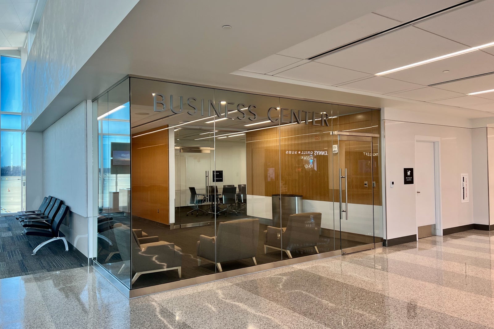 Every traveler passing through the new concourse can use the small business center next to Gate 9. It features leather recliners, some high-top bar seating and a conference room that can be rented for meetings.