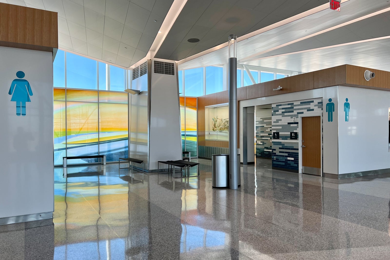 Another big improvement is the four new spacious restroom areas. They're significantly larger and more modern than the ones they replace, and they each feature local artwork.
