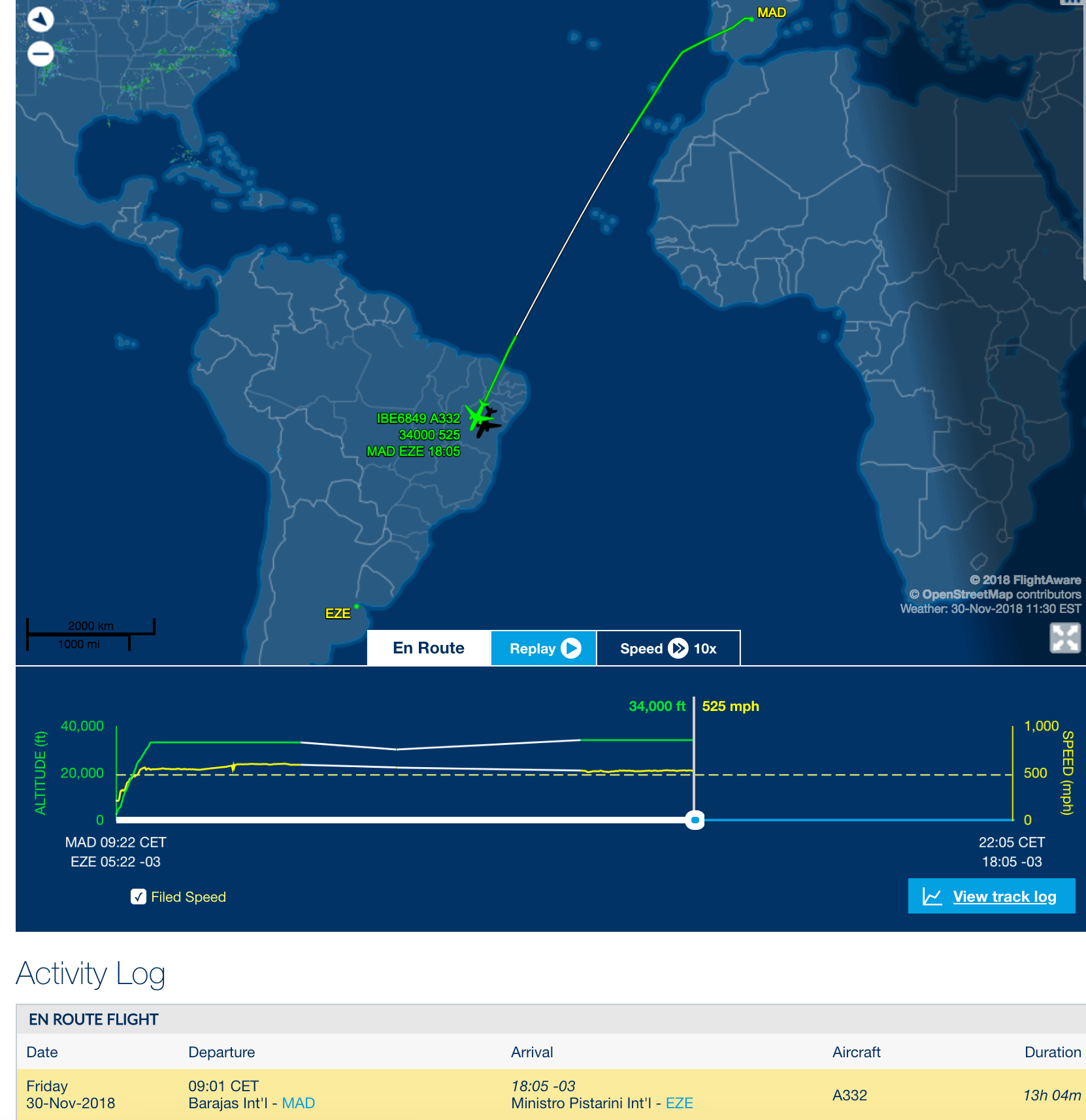 At the time of this writing, the Airbus A330-200 is still in the air. Flight tracking site Flightaware has Merkel at 34,000 feet above Brazil, still a few hours from landing in Buenos Aires.