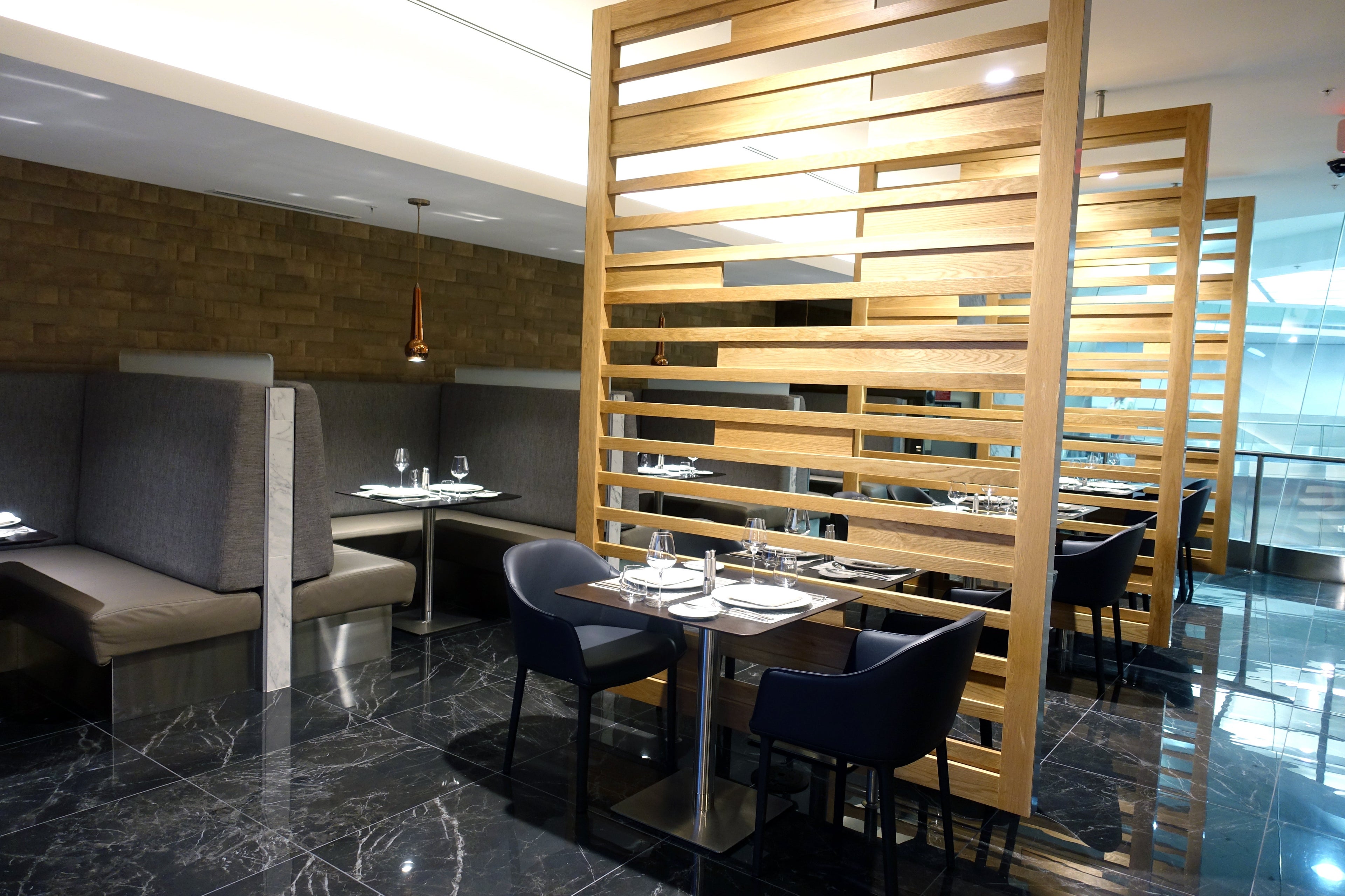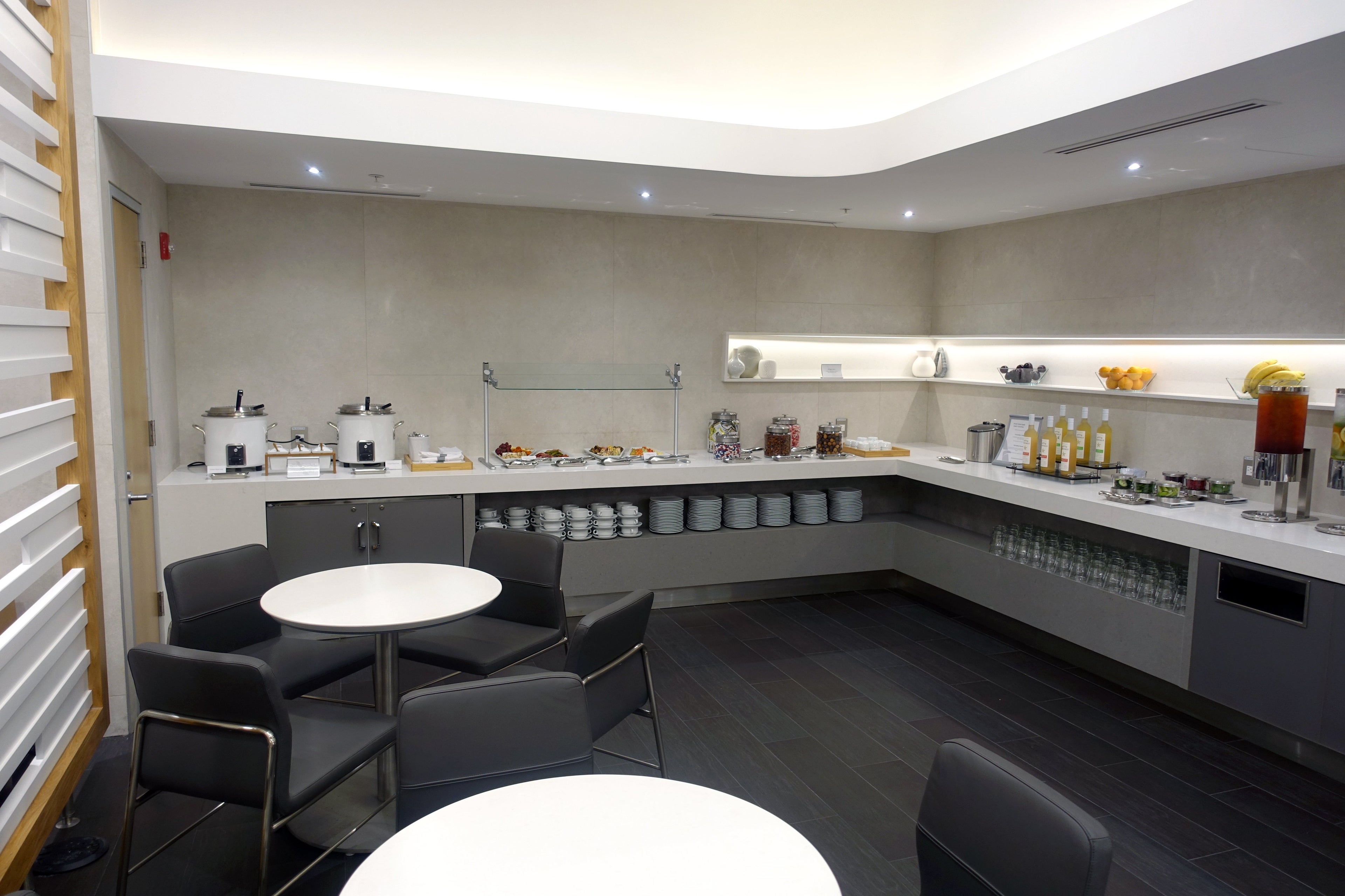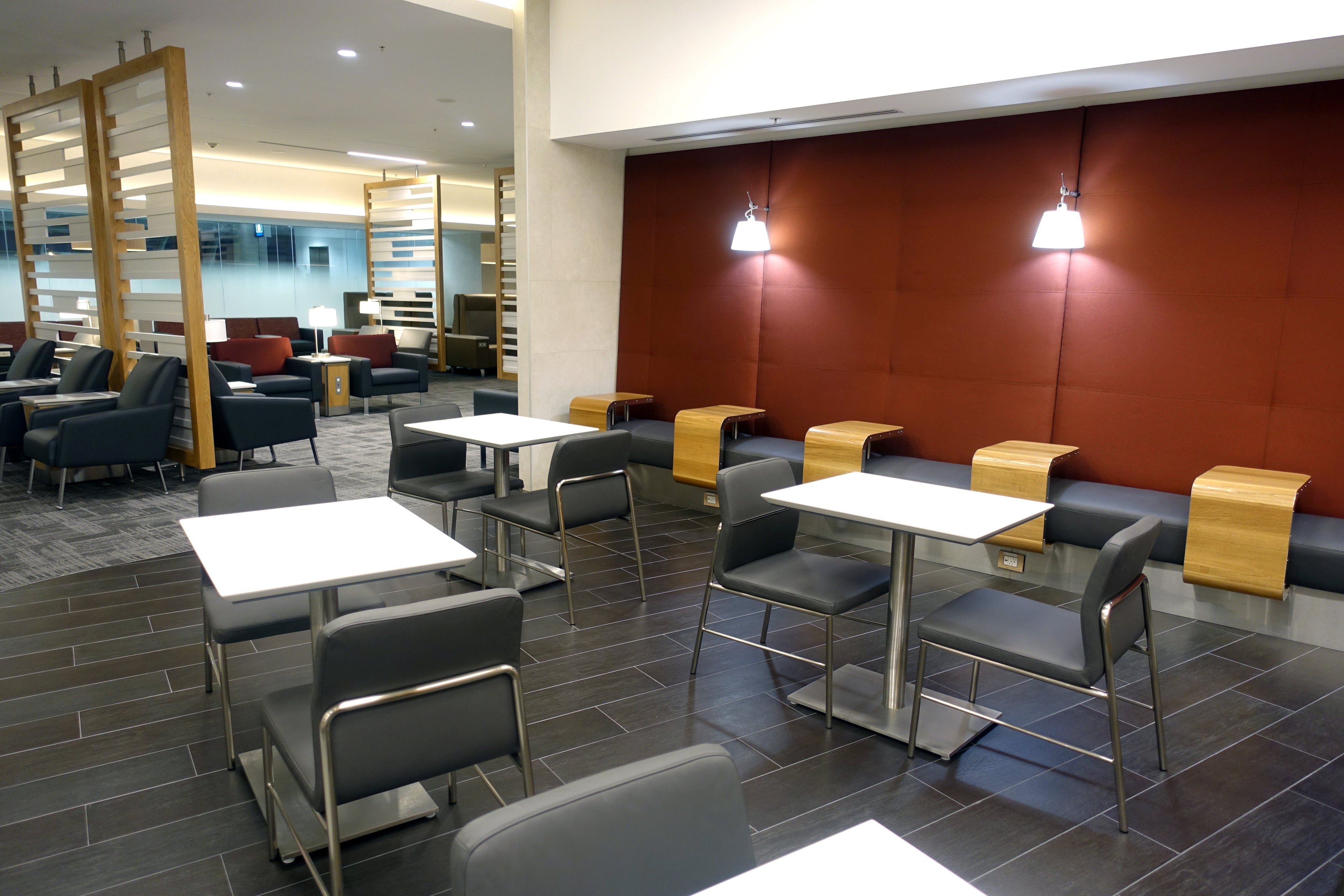 Throughout the rest of the lounge, there are two other small dining areas for snack-size options. One is located in the designated quiet side of the lounge.