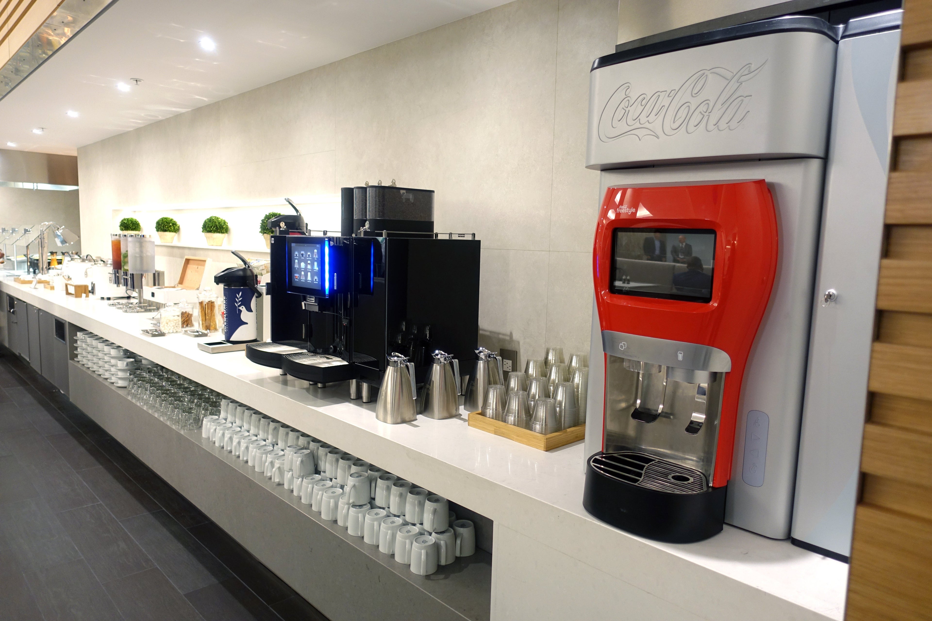 There's also a soft drink station on one wall of the main dining area — soda machine, coffees and more.