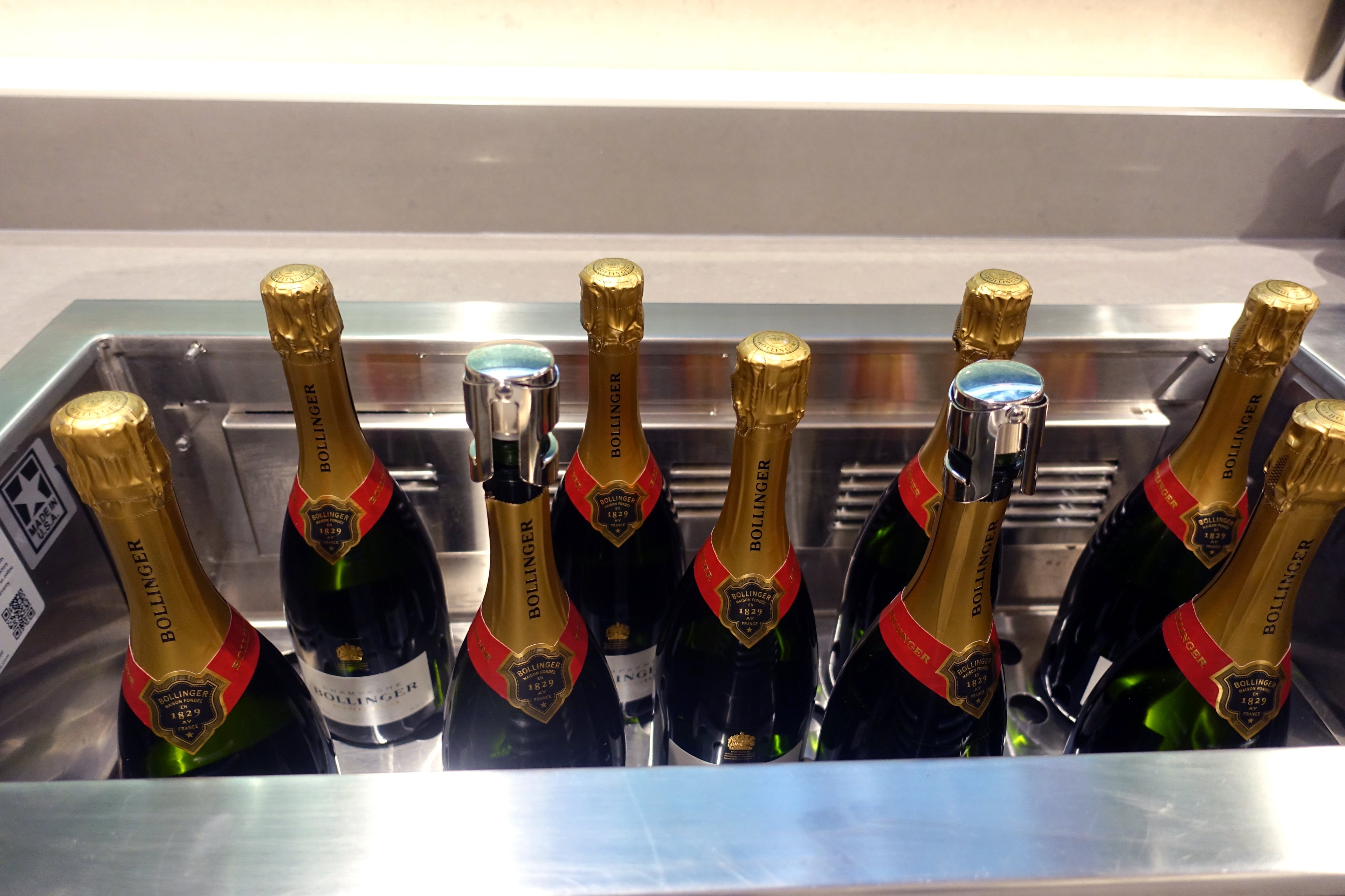 There's also a Bollinger Brut tub with several bottles inside.