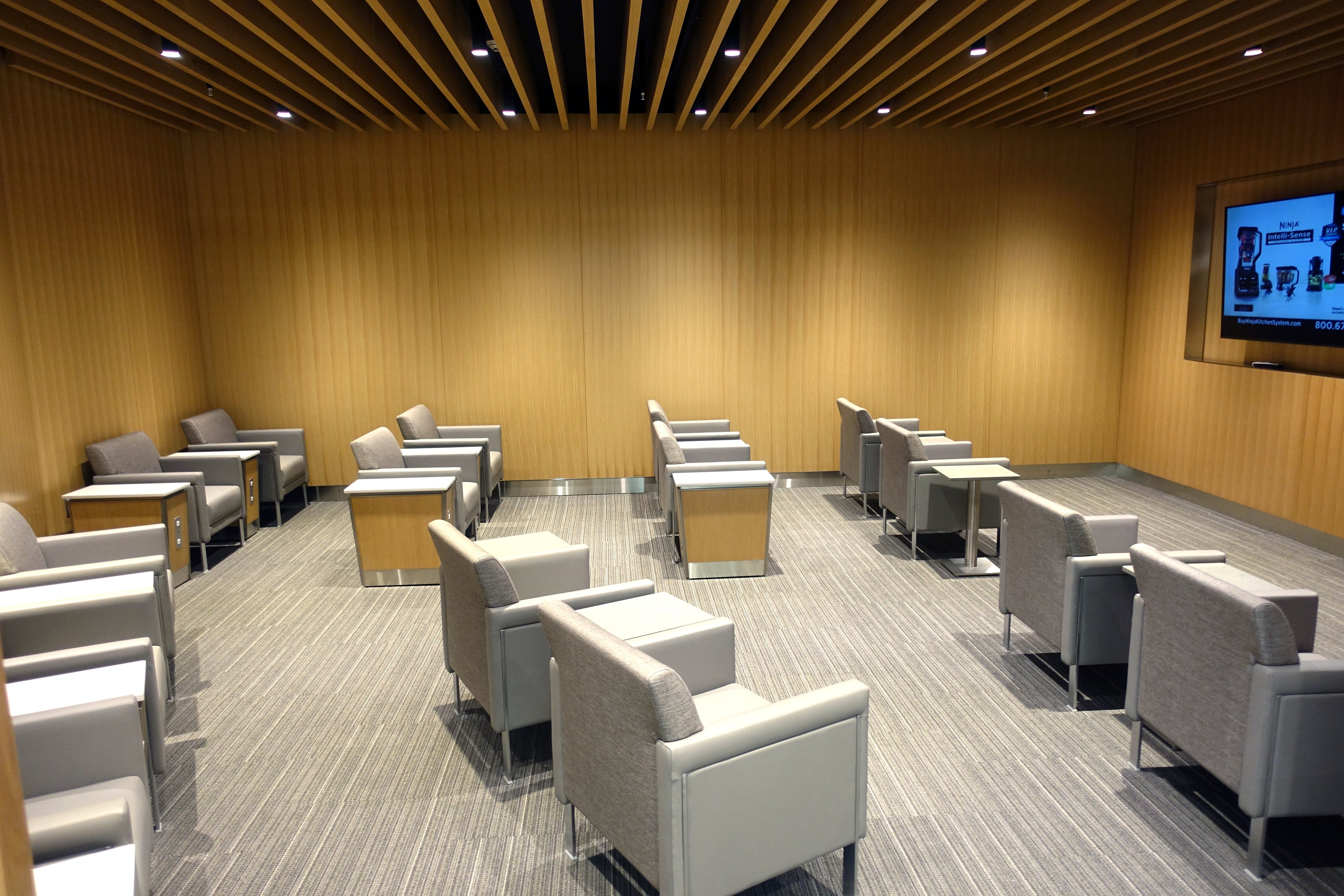 Sandwiched in between the quiet area and the noisier section of the lounge is a theater room with two large TVs and plenty of seating.