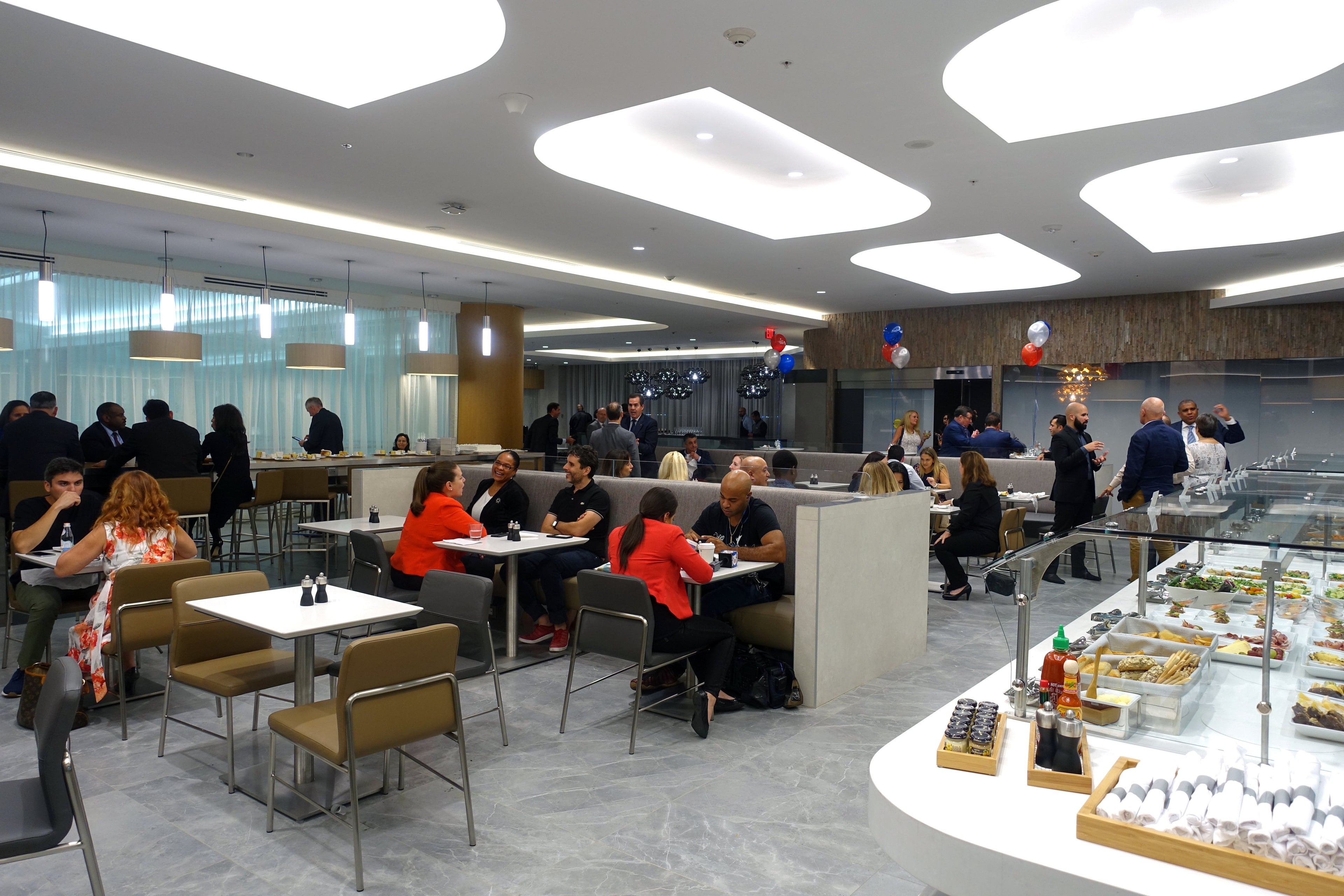 At just under 29,000 square feet, the Flagship Lounge at MIA is massive. Just walking around the space could take more than 10 minutes to explore all of its open areas. Plus, on top of that, there are plenty of nooks and crannies to get lost in. In all, the space features approximately 475 seats.