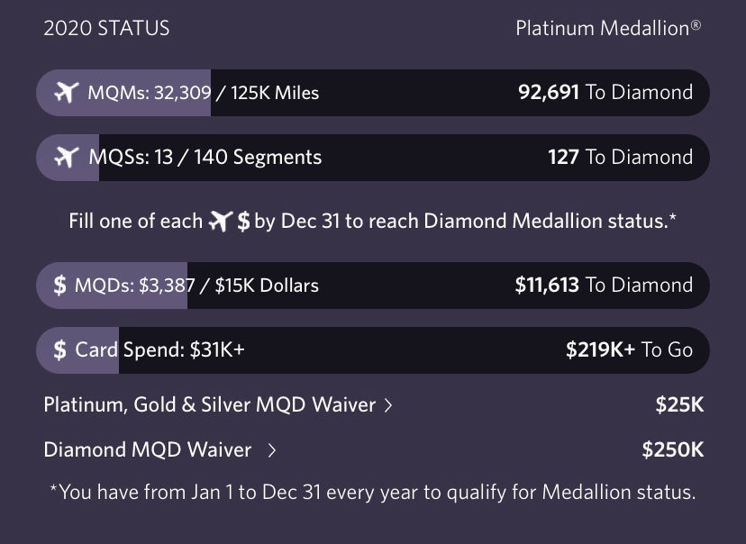 I ended up earning 32,309 MQMs and spent about $3,387 for 2019 - successfully completing the challenge and earning Delta Platinum for 2020. This is likely to be my focus for next year as well.