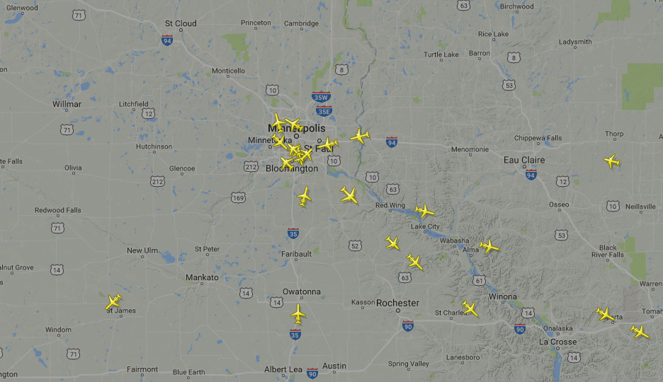 Here's a peek at air traffic departing from or arriving at MSP this morning.