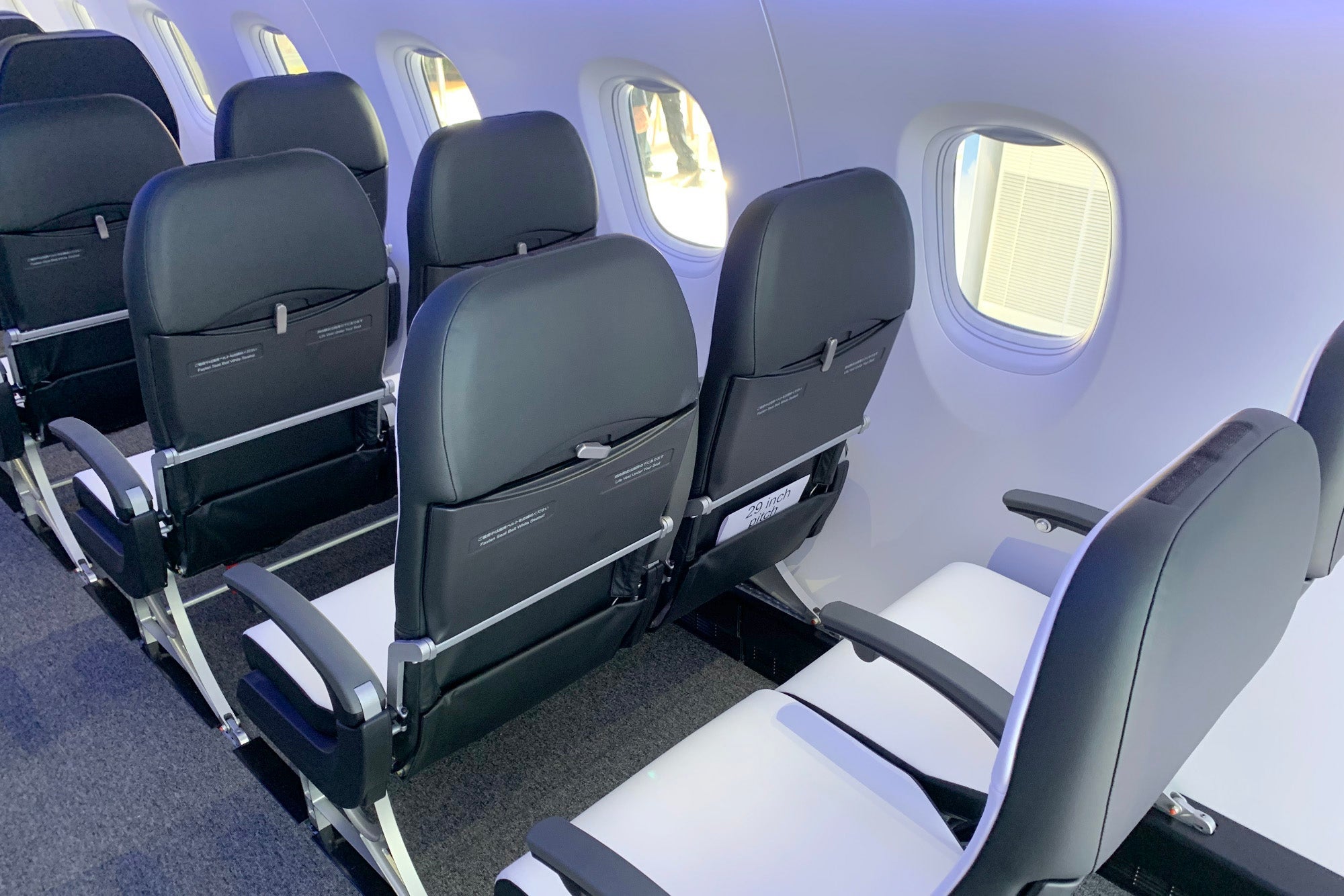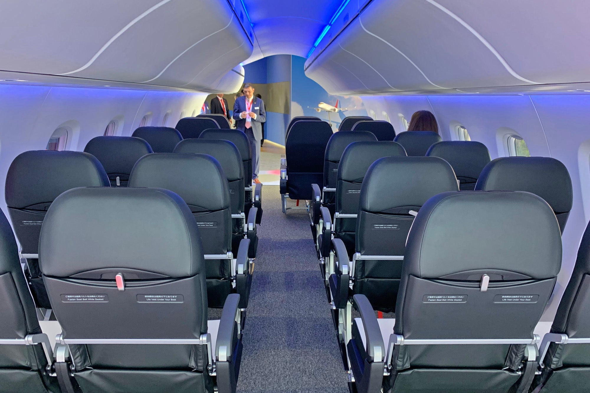 The manufacturer doesn't yet have an M100 prototype to show off, but there was a cabin mock-up available at the show, giving journalists and potential airline customers a feel for what to expect.