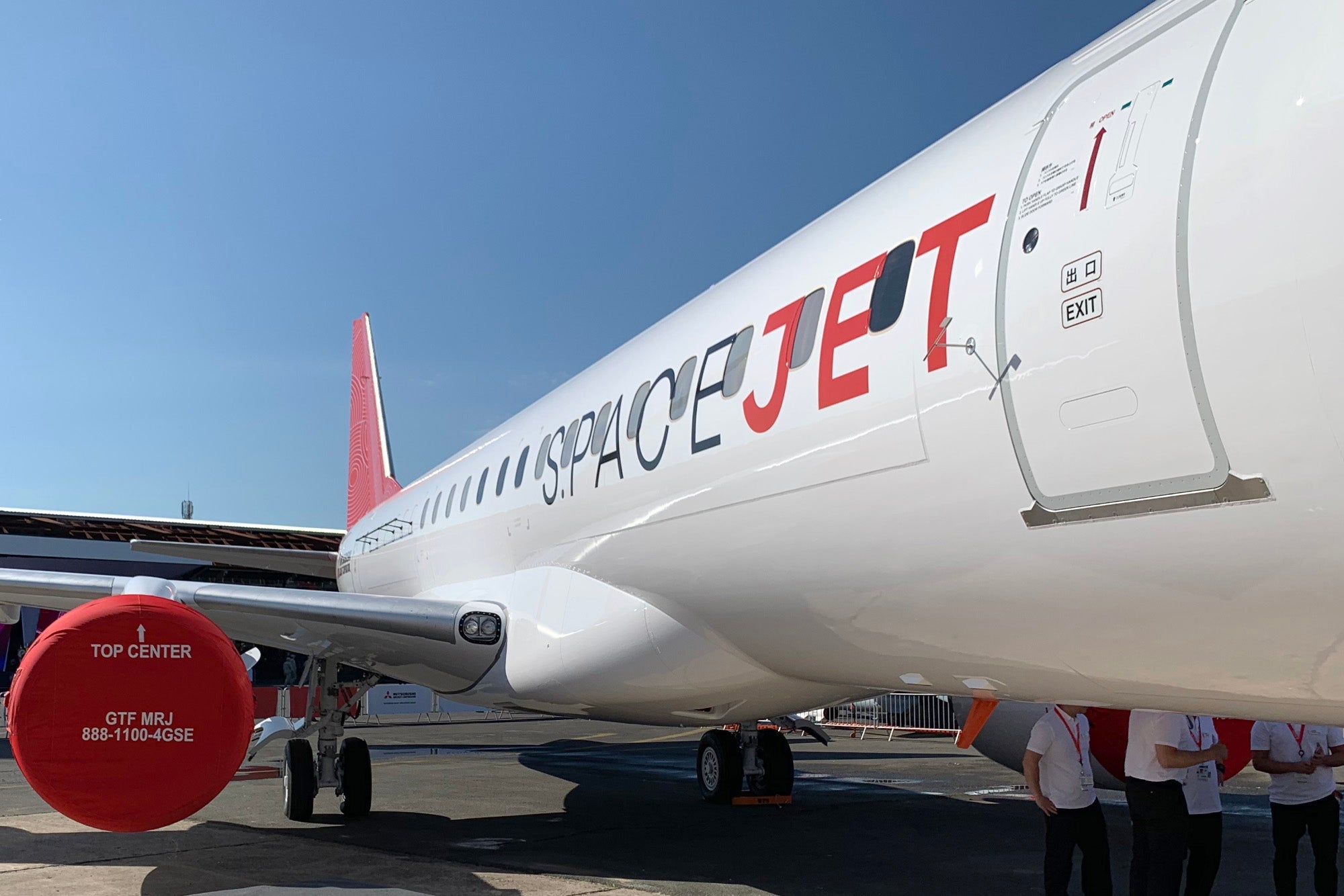 Mitsubishi rebranded its regional jet just ahead of the 2019 Paris Air Show, and we had a chance to tour the manufacturer's new "SpaceJet" at the event itself — well, a cabin mock-up, at least.