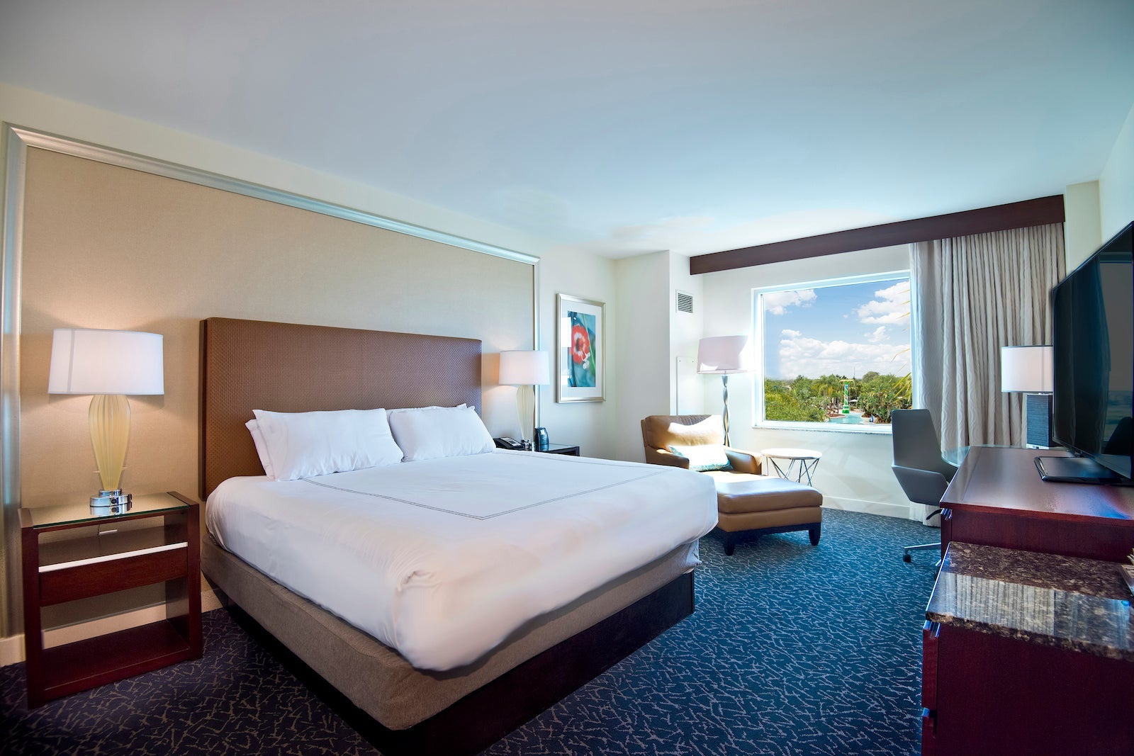 Considering its convenient location just a mile away from Disneyland, the Hilton Anaheim is a logical choice for those who love the House of Mouse. For parkgoers, the hotel offers discounted tickets, a shuttle service to the parks and even special "Disneyview" rooms that have views of the nightly Disneyland fireworks display.