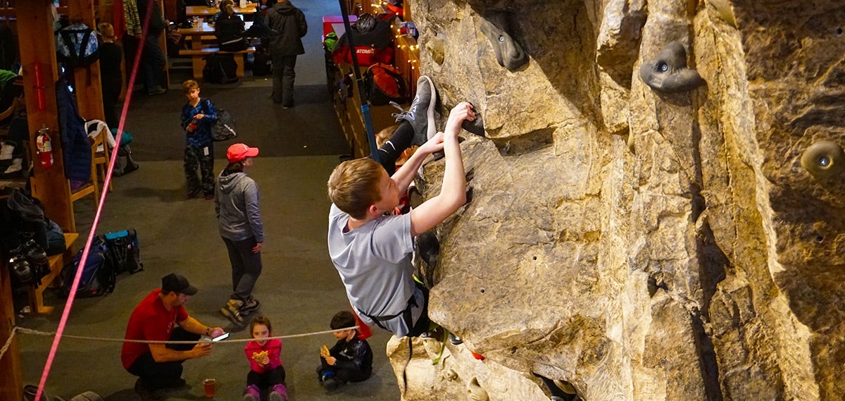 However, if you'd prefer something a tad simpler, there's a climbing wall inside the base lodge at the mountain. While this is currently closed due to COVID, I was able to see the space myself and it looked pretty cool — especially since you can climb 365-days a year (when it's open). An incredibly fun activity even while you are taking a mid-day break from skiing.